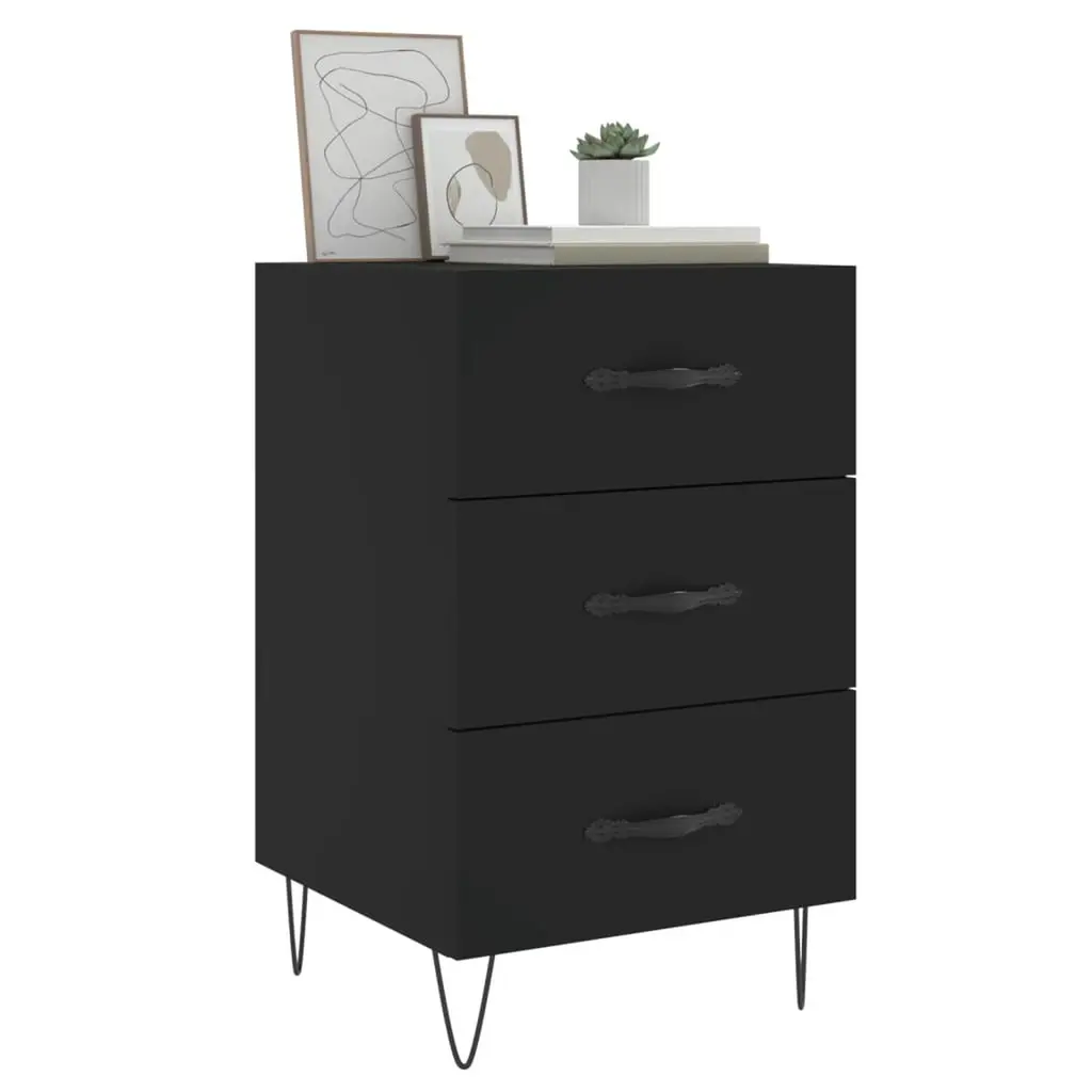 This bedside cabinet combines function with a modern vibe, making it just right for your bedroom or living room. The sleek black finish fits well with your interior while giving you the storage you need for your books, lamps, and other stuff, boosting the overall look of your space. Spacious drawers provide loads of storage, keeping everything organized and easily accessible.The durable engineered wood construction ensures the cabinet can handle daily use while staying stylish.Its modern square shape and minimal design fit well with various decor styles, making it versatile for different spaces.Each of the three drawers has traditional pull handles made from polished iron, giving the cabinet an elegant flair.A wall attachment device is included, allowing you to secure the cabinet for extra stability and safety in your home.