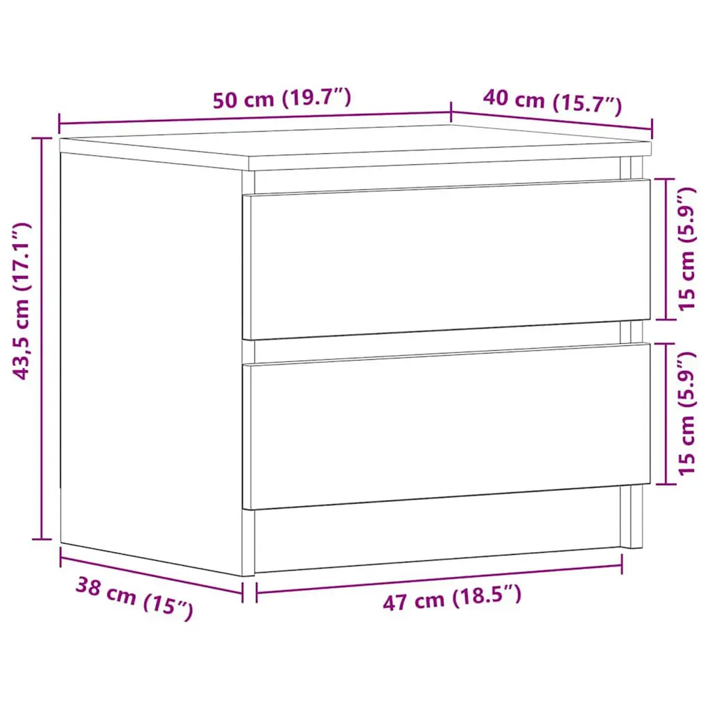 Vidaxl Bedside Cabinet Black Oak 50 X 40 X 43.5 Cm Engineered Wood