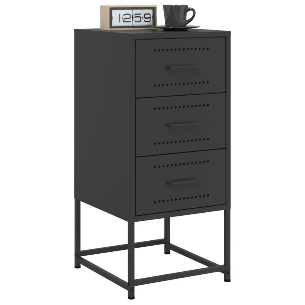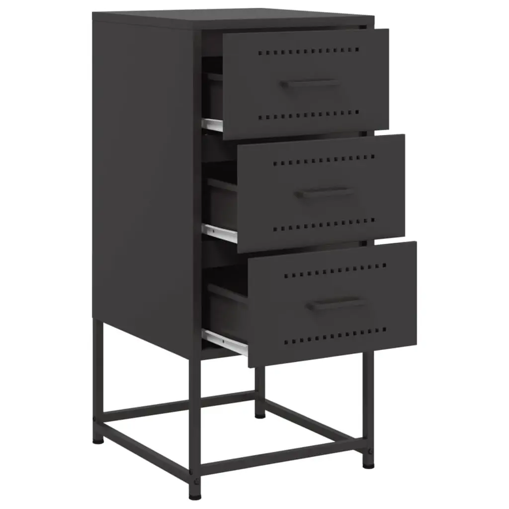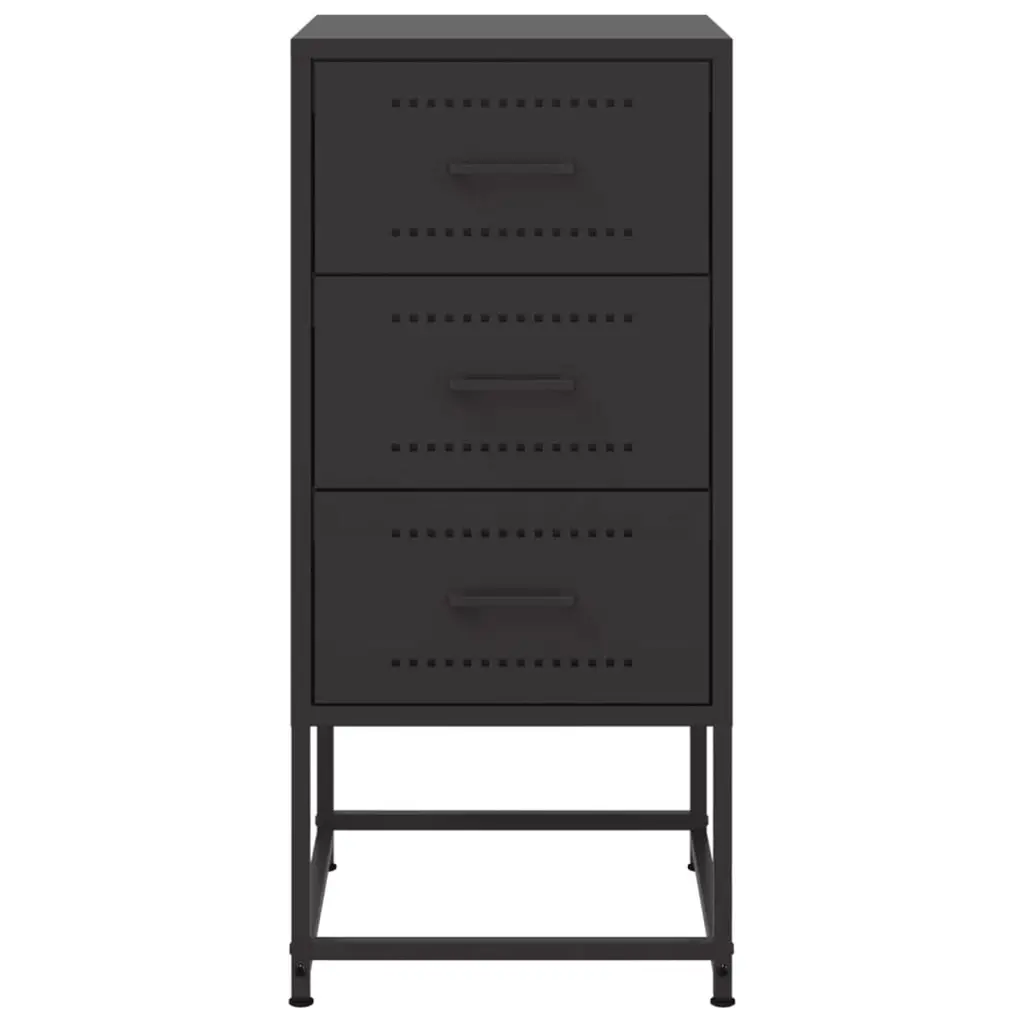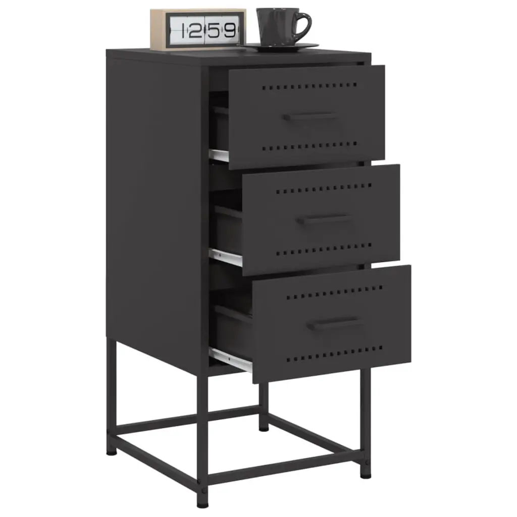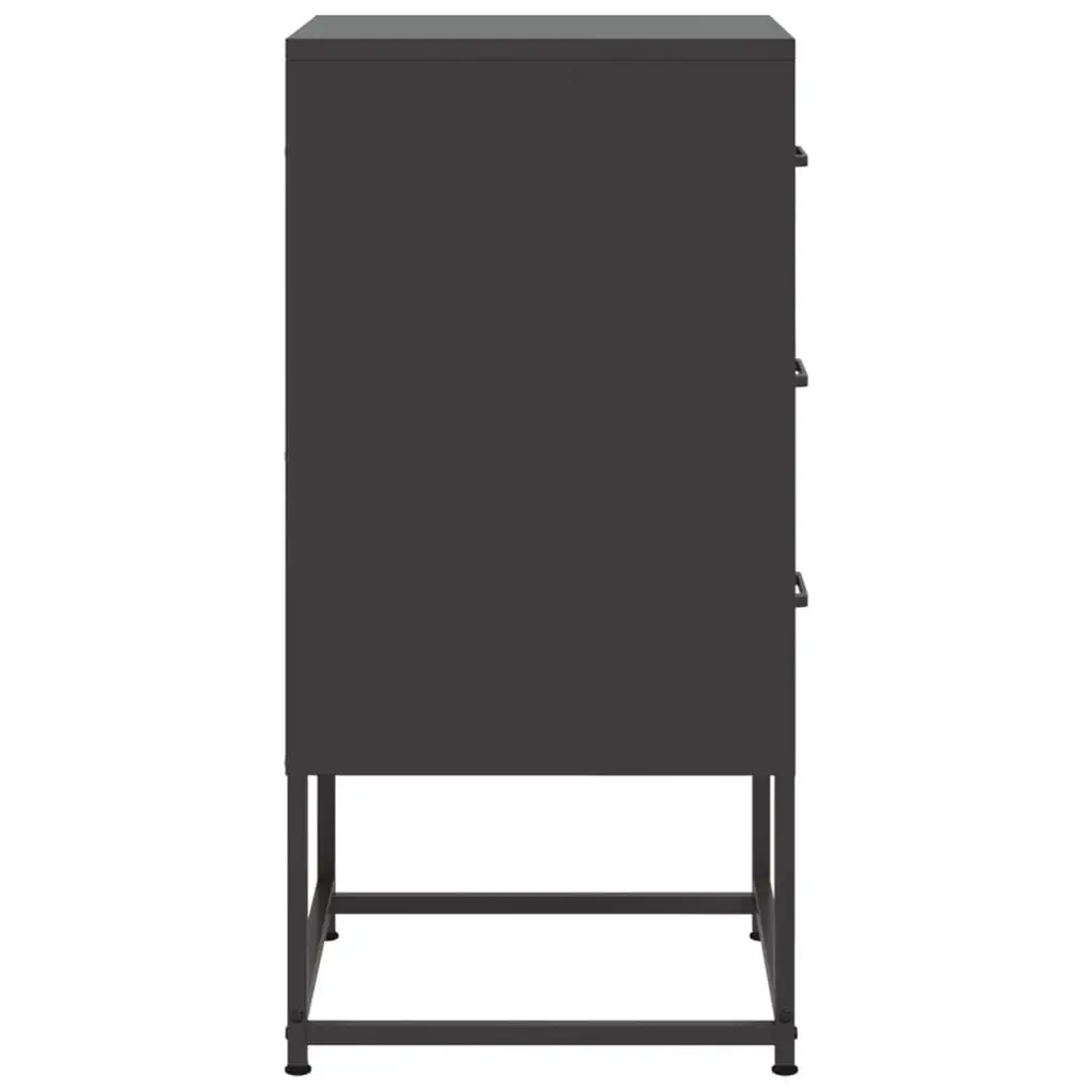 This Industrial Style Bedside Cabinet is just what you need for a cool and functional space. Made from strong steel, it has a sleek black finish and minimalist vibe, making it perfect for bedrooms or living rooms. Great for holding a lamp, books, or knick-knacks. Ample Storage: With three spacious drawers, this bedside cabinet lets you keep personal items organized and easily accessible. Each drawer’s generous interior height of 7.1 in makes it perfect for stashing away books or other nighttime essentials.Durable Build: The robust construction using high-quality steel guarantees long-lasting durability and strength, making this cabinet capable of standing up to daily use in any setting.Stylish Design: Its contemporary industrial design, characterized by clean lines and a powder-coated finish, effortlessly adds sophistication to your room, providing a stunning visual statement.Easy Maintenance: With a matte finish, this cabinet can be easily kept clean by simply wiping it down with a damp cloth, ensuring it stays looking fresh and stylish with minimal effort.Multiple Uses: This adaptable piece can serve as a nightstand in your bedroom, a study table accessory, or even a decorative stand in your living room, enhancing the functionality of your space.