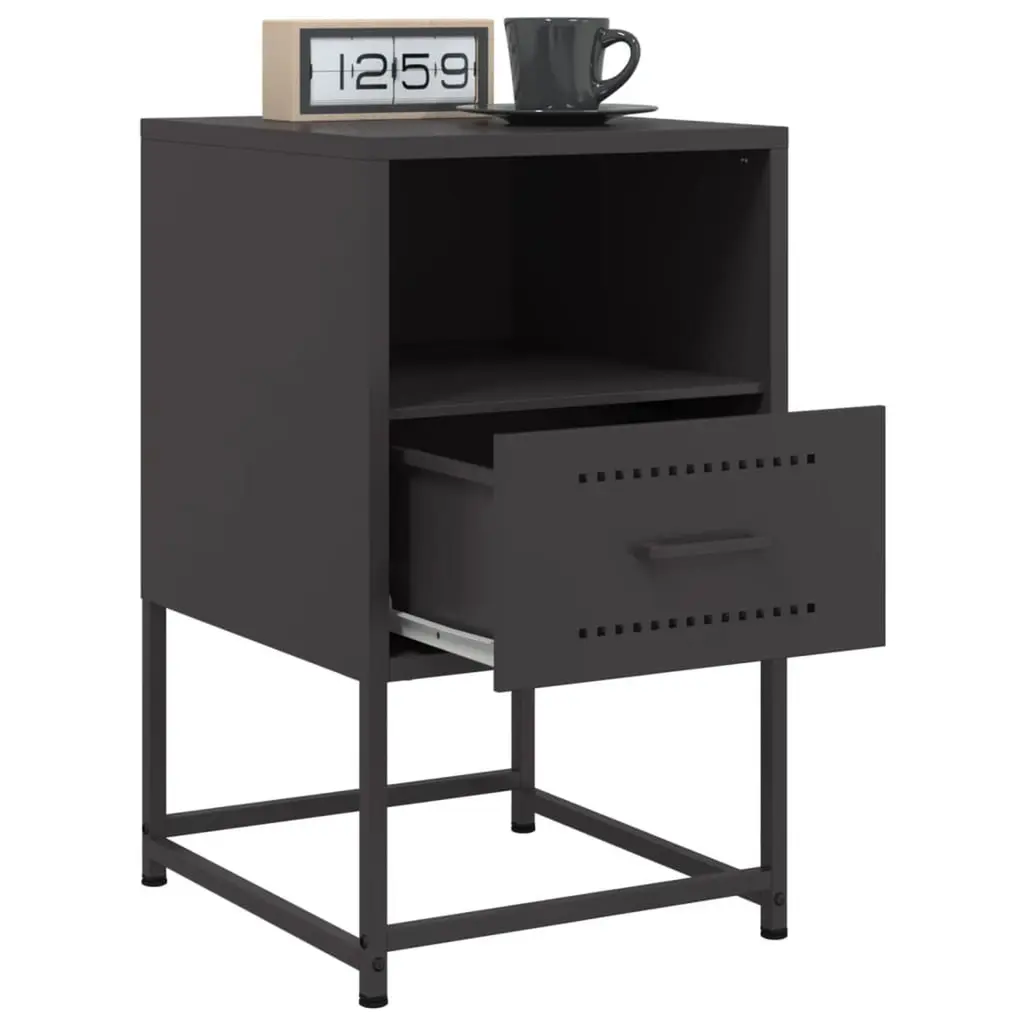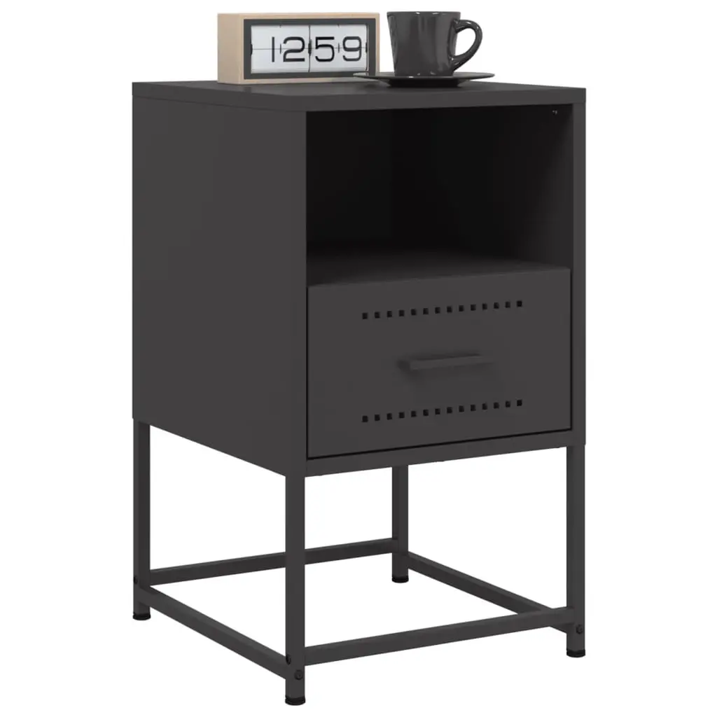 Vidaxl Bedside Cabinet Black Steel Medium Bedside Cabinet Rectangular