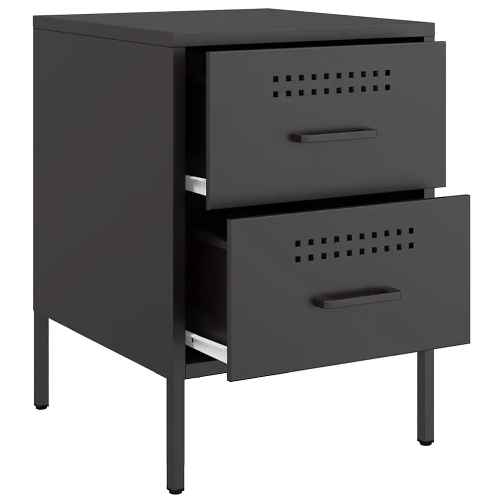 This industrial metal bedside cabinet is a must-have for any modern bedroom or living space, merging style and functionality into one compact piece of furniture. With its sleek black finish and solid design, it adds a touch of flair while offering practical storage for your nighttime essentials or decorative items. This bedside cabinet sports a modern industrial design that fits any living room or bedroom decor. With two spacious drawers, it offers plenty of room for books, personal items, or whatever else you want close by. Made from high-quality steel and with a powder-coated finish, this cabinet is built to last while keeping a sleek look. It’s easy to maintain, needing just a quick wipe with a damp cloth. This cabinet is super versatile—it can double as a plant stand or end table, fitting into your lifestyle effortlessly.