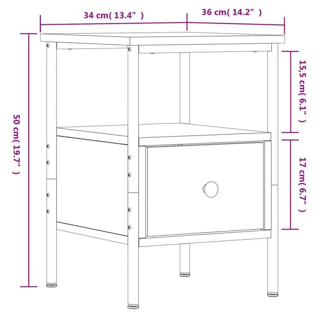 Vidaxl Bedside Cabinet Brown Oak Engineered Wood And Iron Compact