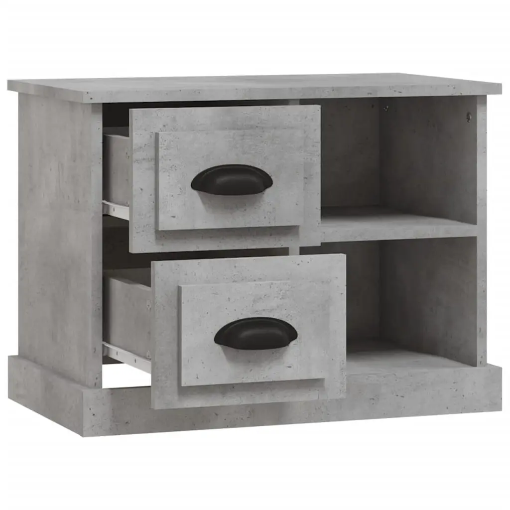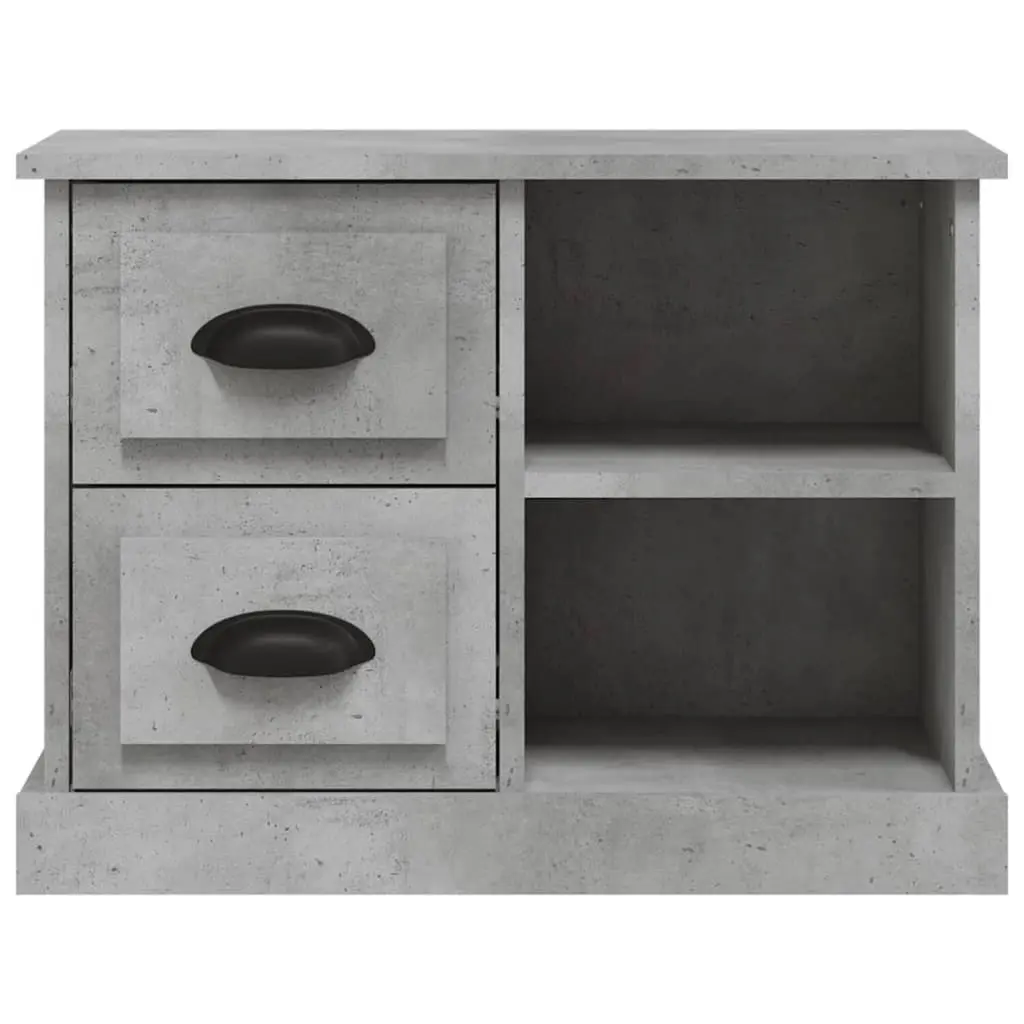 This bedside cabinet combines style and practicality, making it perfect for modern bedrooms. Its sleek concrete grey finish enhances any room while providing useful storage. Ample Storage: The bedside cabinet has two roomy drawers, perfect for keeping personal items like books, glasses, or nighttime essentials neatly stored. This clever design helps keep your bedside tidy while maximizing your space.Modern Design: Its sleek shape with a smooth grey finish adds a touch of contemporary flair to your room's style. The subtle color ensures it fits in with different styles and color schemes.Quality Material: Made from durable engineered wood, this cabinet's built to last and is moisture-resistant for extra durability. This sturdy design is ready for everyday use while looking stylish.Easy Assembly: With an assembly manual and basic tools included, putting this cabinet together is a breeze. You'll have your chic bedside table ready in no time.Versatile Use: Suitable for various settings, this cabinet works great as a nightstand in bedrooms or doubles as a telephone stand in living areas, adapting easily to your needs.