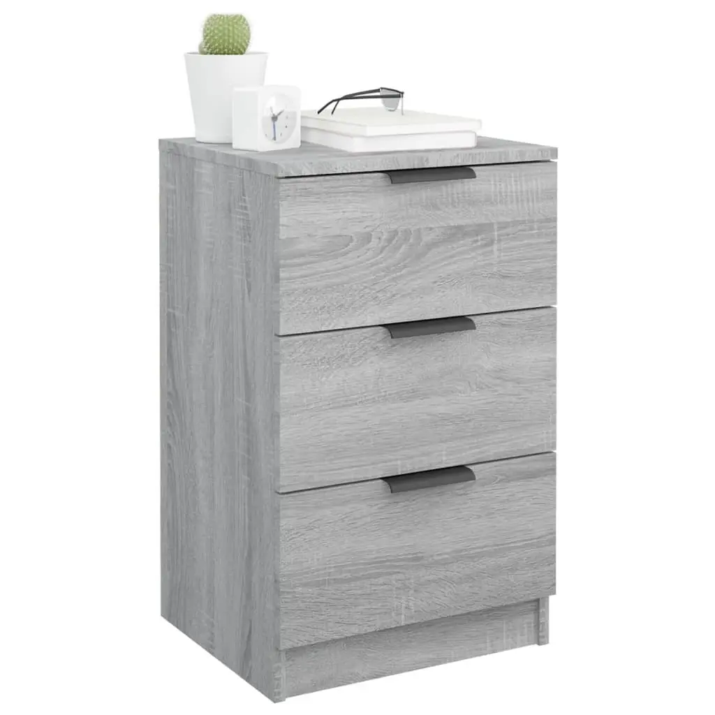 This bedside cabinet really ups the style of any bedroom with its classy Gray Sonoma finish and trendy shape. Its smart design combines functionality and style, making it a perfect spot for your personal items while fitting in with modern decor. Stylish Design: The sleek matte surface and clean lines give a modern feel that jazzes up any room. It balances simplicity with elegance, making it a solid match for many interior styles. Ample Storage: With three standard drawers, this cabinet provides generous storage for books, glasses, and bedtime essentials. It helps keep your bedside tidy and organized. Durable Material: Made from top-notch engineered wood, this bedside cabinet is built to last. It fights off moisture damage, ensuring it stays looking great for years. Safety Features: The wall attachment helps secure the cabinet, cutting down risks of it tipping over and keeping it stable. Ideal for homes with kids or pets. Smooth Texture: The smooth finish not only looks great but makes cleaning a breeze, so you'll keep it looking its best with little hassle.