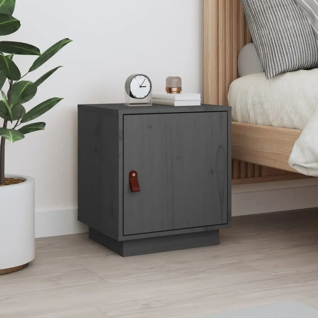 Vidaxl Bedside Cabinet Grey Solid Pine Wood 15.7 In X 13.4 In X 17.7 In