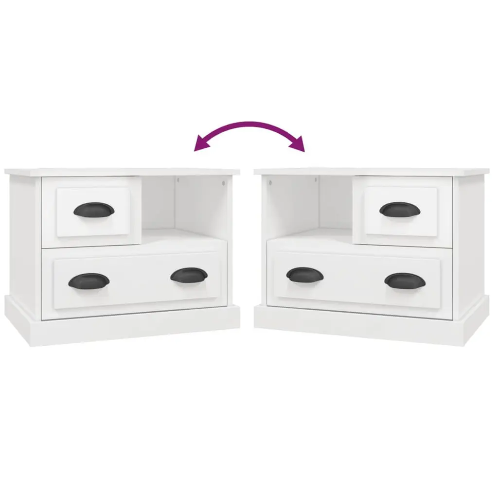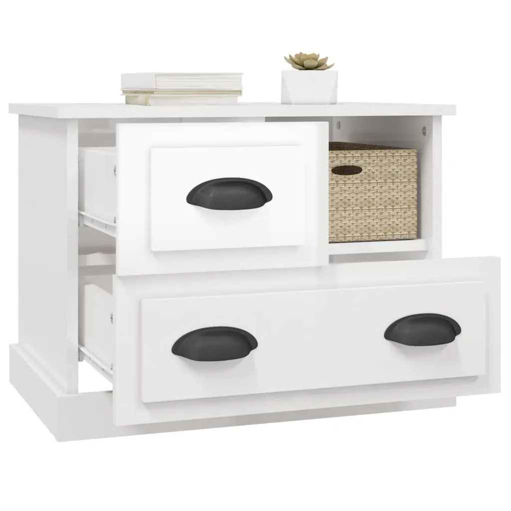 This Bedside Cabinet boasts a modern vibe with its high gloss white finish that brightens up the room and fits with various décor styles, making it perfect for any bedroom. Its compact design is just right for those needing more storage without taking up too much floor space. With smooth surfaces and recessed handles, it's easy on the eyes and practical, a must-have for the modern home. Ample Storage: This bedside cabinet has two roomy drawers that are spot-on for tucking away books, chargers, or pajamas, keeping your space tidy. Sleek High Gloss Finish: The high-gloss white surface adds a modern flair and is easy to wipe clean, making it look sharp in any bedroom. Versatile Design: This cabinet isn't just for the bedside; it can work as a side table in lounges or handy storage in hallways, adapting to fit your home. Durable Construction: Built from engineered wood, this cabinet is made to handle daily use, ensuring it's a reliable part of your furniture collection. Compact Dimensions: With dimensions of 23.6 in long, 15.4 in wide, and 17.7 in high, it slides nicely into tight spots, making it ideal for smaller rooms.