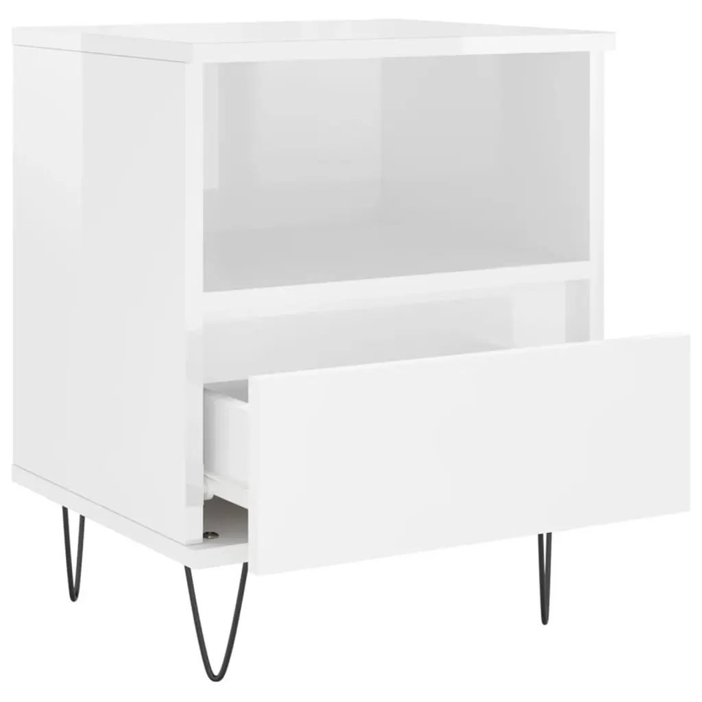 Vidaxl Bedside Cabinet High Gloss White Engineered Wood, Metal Small