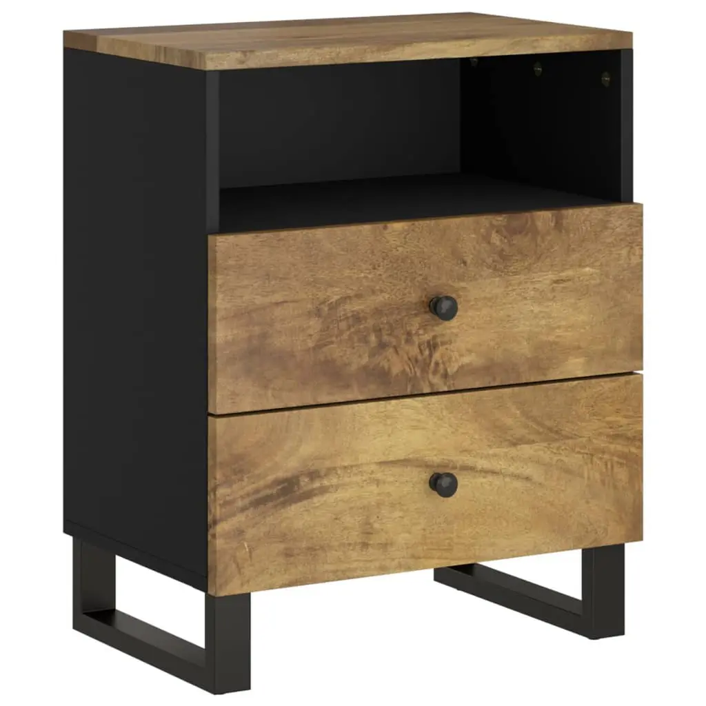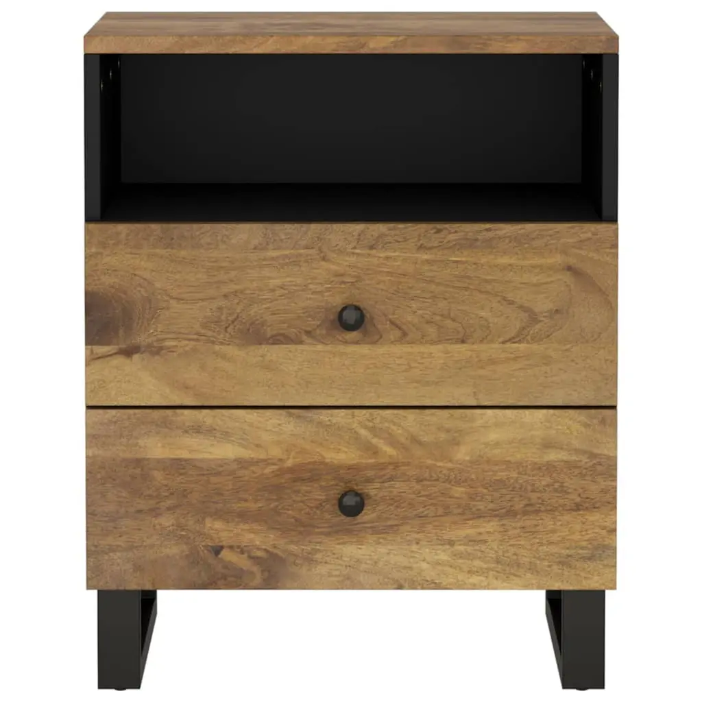 This bedside cabinet is a must-have for your bedroom, mixing functionality with an industrial style that enhances your space. Made from solid mango wood and engineered wood, it has a lovely honey brown finish that fits nicely into any room while providing practical storage for your nighttime essentials. Ample Storage: This bedside cabinet has two spacious drawers and an open compartment, making it easy to tuck away items like books, glasses, or remotes without cluttering your bedside. It’s a perfect combination of style and practicality—great for keeping all your essentials within reach. Whether you like a tidy setup or a curated display, this cabinet's got you covered. High-Quality Build: Made from solid mango wood and engineered wood, this piece really shines in durability and charm. The wood's natural texture shows through the stained finish, giving every cabinet its own unique and appealing grain. It's built to last, making it not just a purchase but a solid investment for your home. Sleek Industrial Aesthetic: The minimalist vibe, with industrial touches like matte black knobs and legs, offers a modern style that works with any bedroom decor. This cabinet isn't just functional; it's a style statement that enhances the vibe of your space while remaining super practical. Easy to Maintain: Keeping the cabinet clean is simple; just wipe it down with a dry cloth. Avoiding harsh chemicals will help the smooth surface and finish last longer. This means less time cleaning, so you can spend more time enjoying your lovely space. Versatile Use: Beyond just the bedroom, this bedside cabinet can double as a side table in other areas of your home. Its size is perfect for tucking in close to most beds, seamlessly blending into your home's layout.