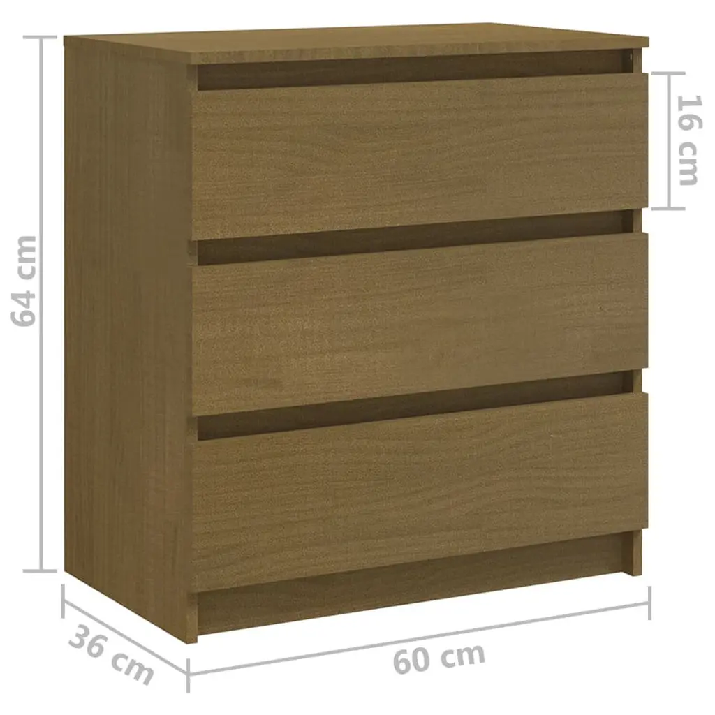 This bedside cabinet blends functionality and style perfectly, making it a top pick for your bedroom decor. The smooth honey brown finish gives it an inviting feel, easily matching both modern and traditional styles. Ample Storage: The three roomy drawers give you plenty of space for your things, making keeping tidy a piece of cake. Each drawer is made from solid pine wood for durability. Durable Construction: Made solid from quality pine, this cabinet's built to last while creating a cozy atmosphere. Stylish Design: The honey brown finish gives it a warm and welcoming look and fits well with any decor style, boosting both look and practicality. Easy Care: Just give it a wipe down with a damp cloth and you're good to go. Regular care helps avoid scratches and stains, so you can enjoy it worry-free. Space-Saving Size: At 23.6x14.2x25.2 in, this cabinet is compact but still offers solid storage. It fits nicely beside your bed, keeping your essentials right at hand without taking up too much space.