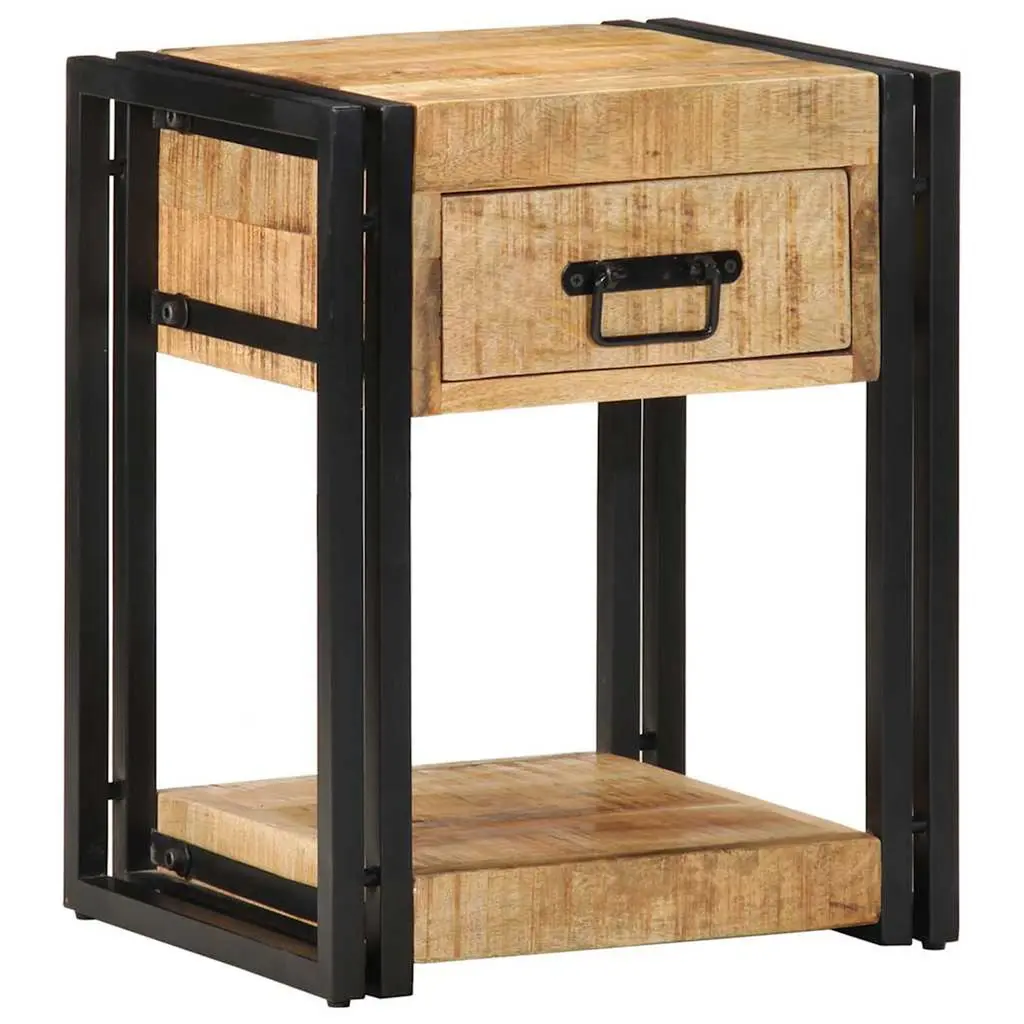 This rustic bedside cabinet brings a lovely natural vibe to your bedroom or living space, showcasing hand-picked solid mango wood that radiates warmth and charm. The design looks great while being super practical, making it just right for storing personal bits or showing off some nice decor pieces. Natural Material: This cabinet is made from solid mango wood, famous for its unique grain and toughness, ensuring each piece is special and will last. Ample Storage: With a big drawer and a shelf, this bedside cabinet has heaps of space for essentials like books, glasses, or other bits right at your fingertips. Sturdy Build: Strong metal legs give this cabinet extra stability and strength, so it stands firm while holding your stuff. Timeless Style: Its rustic charm fits right in with various decor styles, from modern to classic, making it a versatile piece for any room. Multifunctional Use: While it's made as a bedside cabinet, it’s also great in other spaces like living rooms for decorating, so it's a flexible addition to your home.