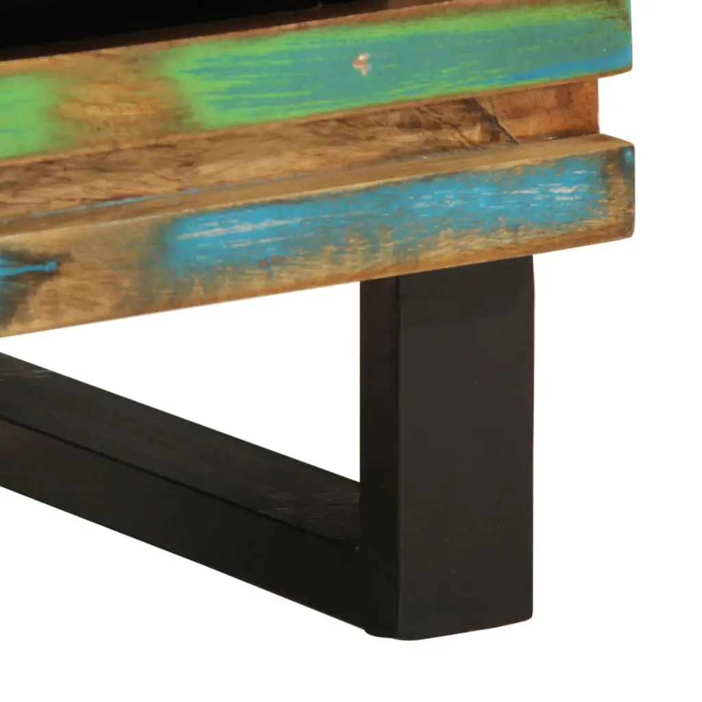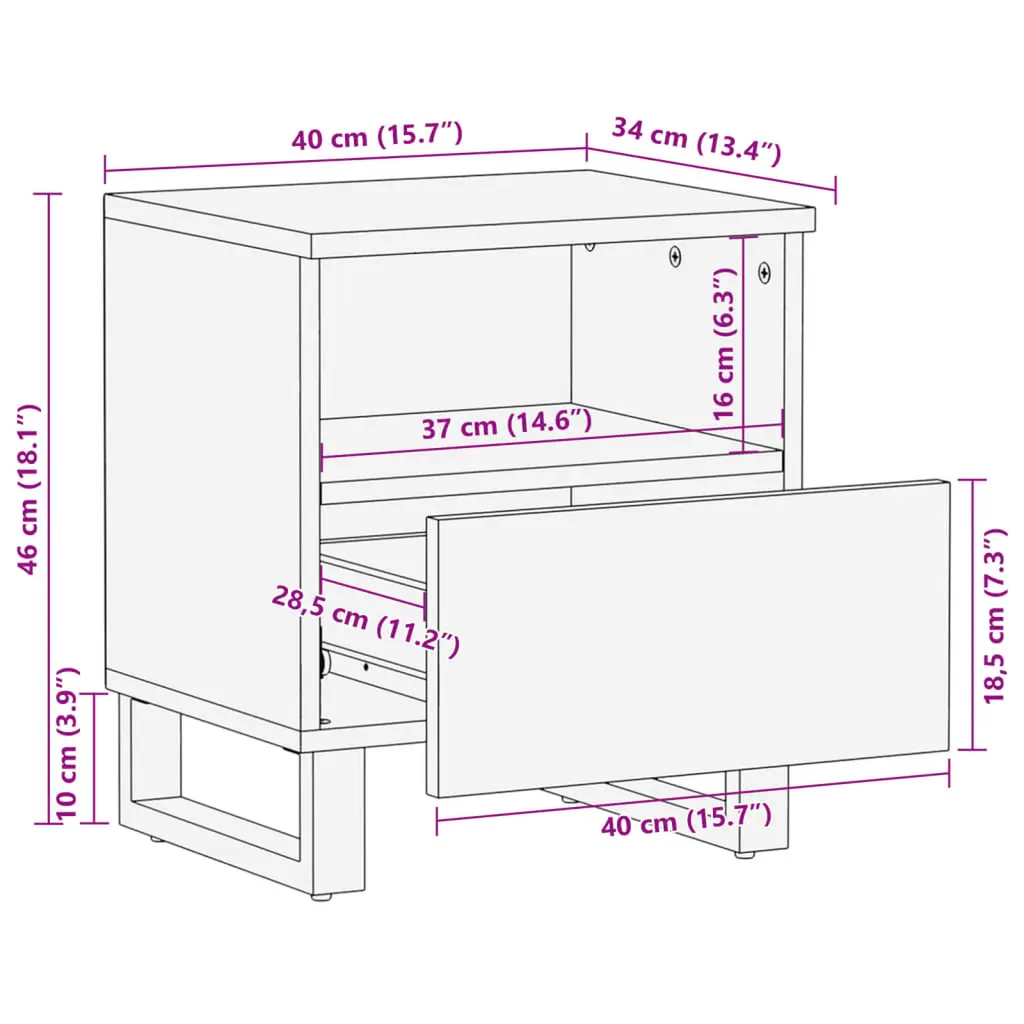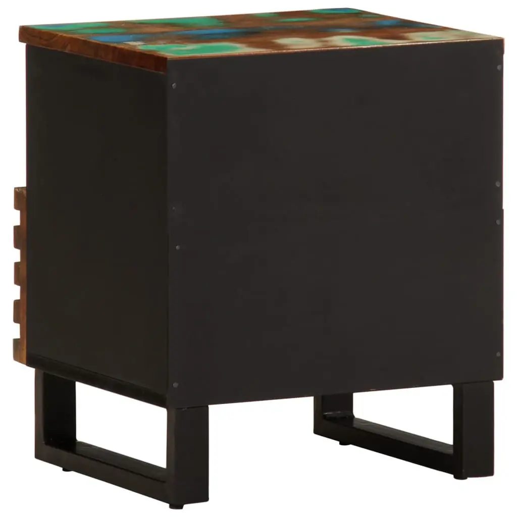 This bedside cabinet combines practicality and style, making it a fab addition to any bedroom. Made from solid reclaimed wood, its multicolored design not only grabs your attention but adds a unique flair to your decor. Stylish Design: The industrial vibe of this bedside cabinet, thanks to its unique wood grains, adds a classy touch to your bedroom. Its matte finish makes it a real stand-out piece.Ample Storage: With a built-in shelf and a drawer, this cabinet has plenty of room for your nighttime essentials. Keep your books, personal items, or bedtime accessories organized.Durable Construction: Made from solid reclaimed wood, this cabinet is built to last while showcasing the wood’s natural beauty with each unique grain.Versatile Use: Not just a bedside table, it can also work as a side table, telephone stand, or decorative piece to adapt to different needs in your home.Comfortable Height: At a height of 18.1 in, this cabinet sits just right next to your bed, making it easy to reach your stuff while looking great in your bedroom.