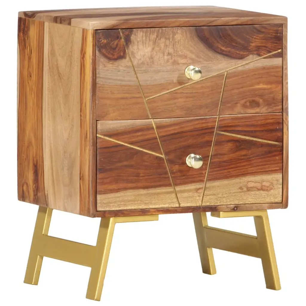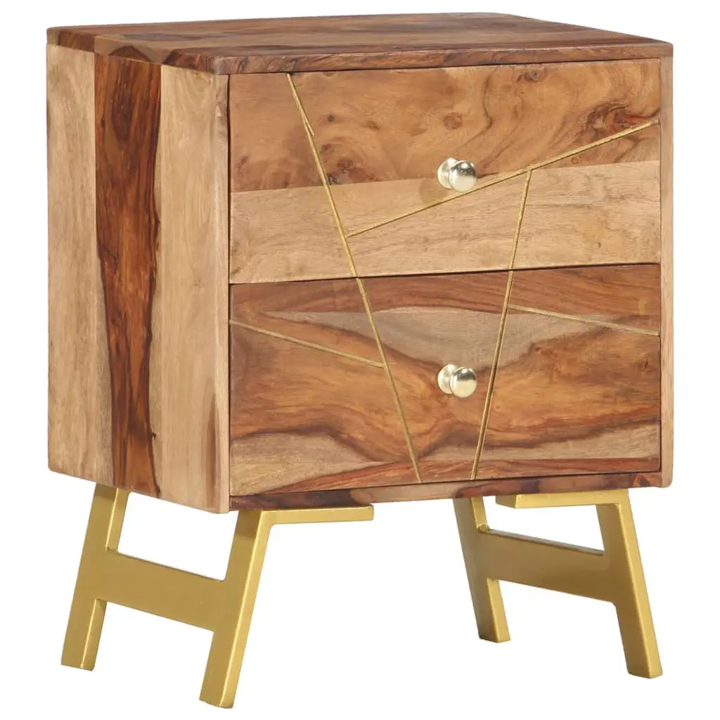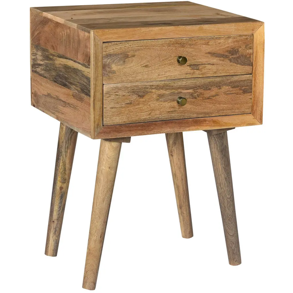 This bedside cabinet shows off rustic elegance, crafted from solid Wood. It combines practicality with timeless charm. It's made to sit nicely beside your bed or a comfy chair, giving you easy access to your bedside essentials while enhancing the natural vibe of your space. Ample Storage: This bedside cabinet comes with two spacious drawers, perfect for stashing books, belongings, or whatever you want close by. It helps you keep things tidy in your bedroom or living room.Durable Design: Made from solid Wood, known for its strength and durability, this cabinet is built to last, making it a great investment. Its sustainable materials create a stylish and sturdy piece that can withstand daily wear and tear.Natural Wood Grain: Each cabinet has a unique wood pattern that shows off the beauty of wood. This uniqueness adds character and charm, making it a great fit for your decor.Elegant Finish: The polished finish not only looks great with a glossy shine but also protects it, making maintenance a breeze. This elegant touch turns a practical piece into a stylish statement in your home.Versatile Use: Perfect not just as a bedside table but also for use in the living room or hallway. Its rustic design fits right in with various decor styles, from classic to modern.