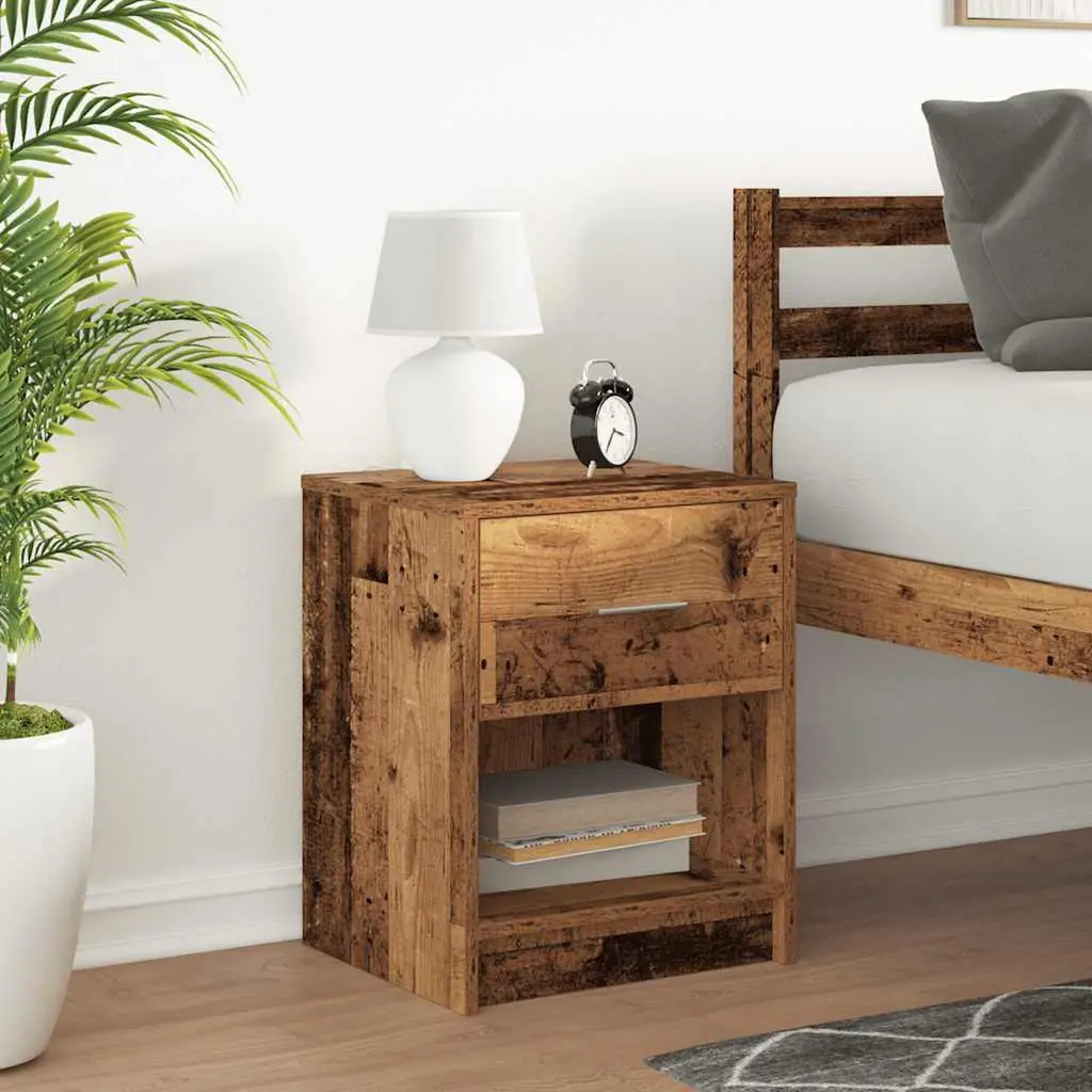 This Bedside Cabinet is a lovely addition to any bedroom, showcasing both style and usability with its great blend of vintage charm and modern simplicity. Its warm old wood finish instantly lifts the room's vibe, turning it into more than just a piece of furniture—it's a key element in creating a chill and welcoming space. Ample Storage: This bedside cabinet offers plenty of room with an open shelf and a smoothly functioning drawer, perfect for keeping your nighttime essentials organized and close at hand. Imagine having your books, glasses, and personal items right there ready for you every night.Modern Aesthetic: The smart design with clean lines and minimal fuss makes this cabinet versatile, ideal for various bedroom styles. Whether your vibe is modern or classic, this table fits in beautifully.Durable Construction: Made from quality engineered wood, this product promises impressive durability for everyday use. Whether it’s holding up a lamp or your morning cup of coffee, you can count on its sturdiness.Moisture Resistant Finish: The smooth surface is treated to withstand moisture, making it easy to wipe clean and keep looking nice over time. A must-have for life that can get a bit busy!Perfect Dimensions: Coming in at 15.7 in x 13.4 in x 19.7 in, the compact size ensures it fits nicely beside your bed without overpowering other pieces in your room. The dimensions are spot-on for snug spaces without skimping on storage.