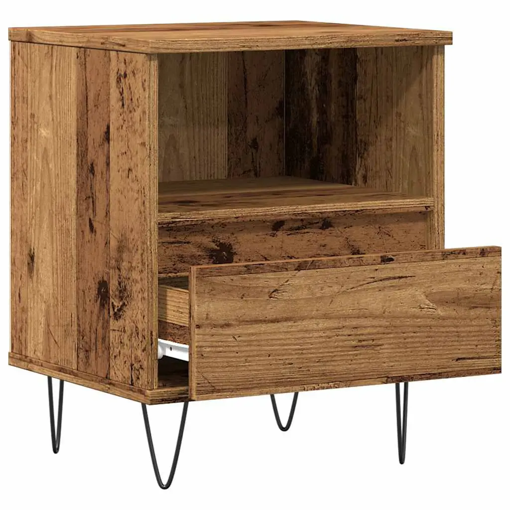 This bedside cabinet has a trendy old wood finish, giving it both style and practicality. It's perfect for modern bedrooms and fits well with various decors, providing a handy spot for your nighttime essentials. Ample Storage: The bedside cabinet has a big drawer with 5.5 in of space inside, perfect for keeping books, chargers, or personal items tidy.Modern Aesthetics: With its sleek brown finish and clean lines, this table fits right in with any modern decor, brightening up your bedroom.Robust Construction: Built from engineered wood with sturdy hairpin legs, this nightstand is tough and stable, so it will stay stylish for ages.Versatile Use: Great as a bedside table or a small side table, this piece is perfect for adults and fits well in both reading nooks and minimalist spaces.Complete Package: Comes with a wall attachment to stop it from tipping, giving you extra safety and peace of mind, especially if there are kids or pets around.