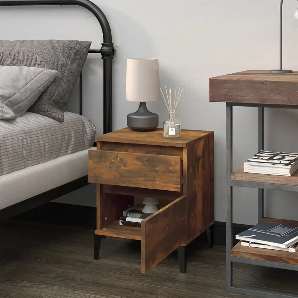 Vidaxl Bedside Cabinet Smoked Oak Engineered Wood, Metal