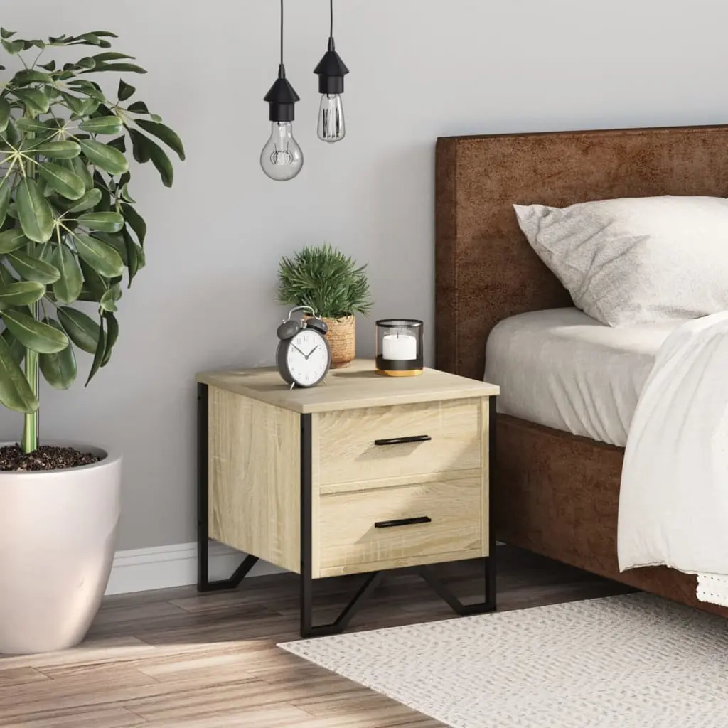 Vidaxl Bedside Cabinet Sonoma Oak Engineered Wood, Metal Medium