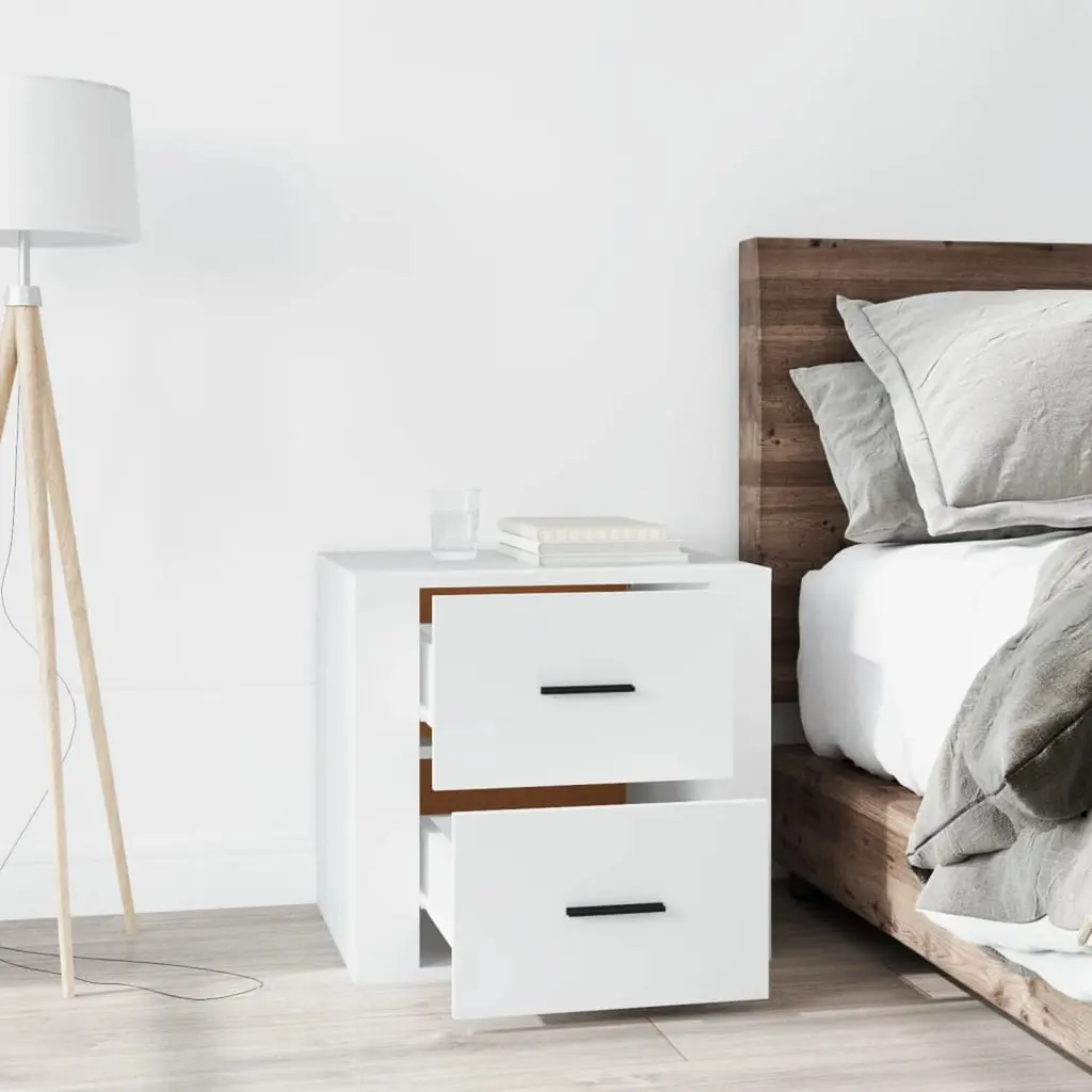 Vidaxl Bedside Cabinet White Engineered Wood 19.7 In X 15.4 In X 18.5 In