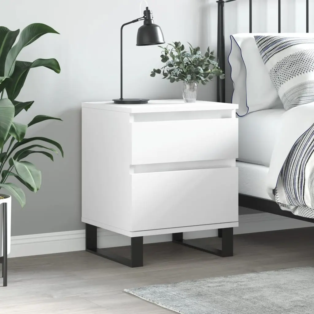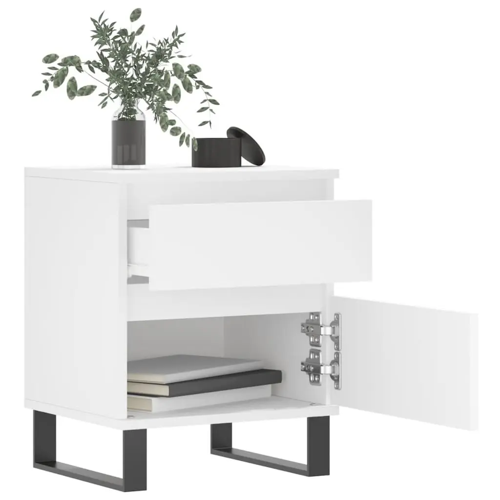 Vidaxl Bedside Cabinet White Engineered Wood, Metal 15.7 X 13.8 X 19.7 In