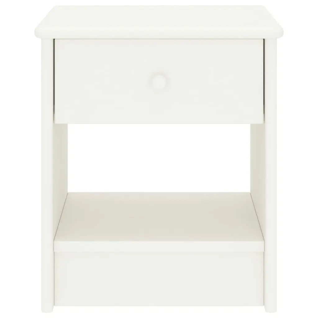 This rustic white bedside cabinet is a must-have for any bedroom or living room, blending functionality with charm. Made from solid pine wood, its understated elegance fits right into various interiors, making it a great addition beside your bed or seating while neatly storing your nighttime essentials. Ample Storage: The cabinet has a solid drawer that offers plenty of room for your books, glasses, or personal items. Keep your nighttime essentials organized and within reach, perfect for those late-night reads.Stylish Design: The sleek matte finish gives your room a modern yet rustic vibe. It’s not just about the looks - this durable finish helps the cabinet keep its appeal over time, fitting into different styles of decor.Natural Wood Texture: Made from solid pine wood, every cabinet has a unique grain that makes it stand out. This natural finish adds a bit of charm, turning it into a nice focal point in your space with its warm look.Versatile Application: Use it anywhere indoors – bedrooms, lounges, or guest rooms as a stylish bedside table or side table. Its practical design caters to your everyday needs while keeping things stylish.Compact Size: At 13.8in long, 11.8in wide, and 15.7in high, this cabinet is perfect for smaller spaces. It offers solid storage without hogging the room, making it a smart choice for apartments or cozy bedrooms.
