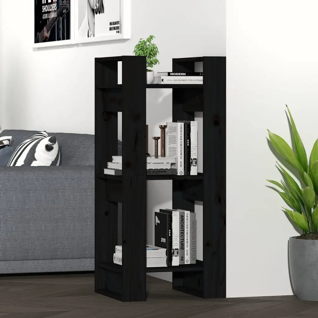 Vidaxl Book Cabinet Black Solid Pine Wood Compact Book Cabinet
