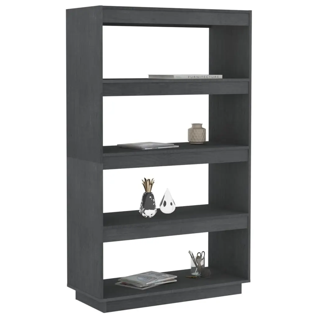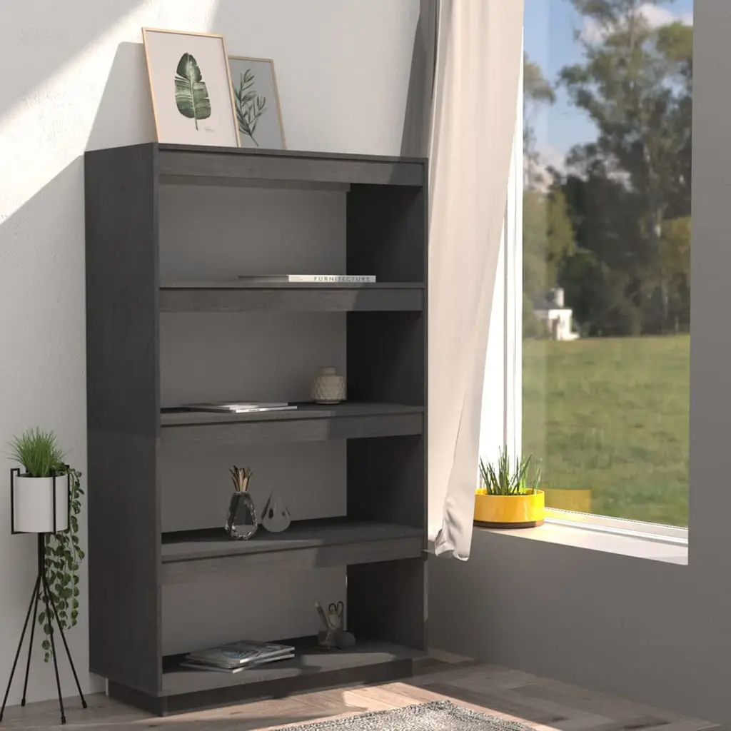This eye-catching book cabinet does more than just store; it acts as a stylish display and room divider. Its contemporary grey finish goes well with most decor styles, adding a modern touch to living spaces while showing off your favorite books, magazines, and decor. Storage Space: With its four spacious shelves, this cabinet provides plenty of room for books, magazines, and decor, keeping your living room or hallway tidy.Room Divider: Designed to work as a room divider, it effectively separates spaces in bigger rooms.Sleek Aesthetics: The smooth, matte grey finish not only looks good but also fits nicely into modern interiors.Sturdy and Reliable: Made from solid pine wood, this cabinet holds up to daily use while giving a timeless natural feel.Easy to Maintain: Just give it a quick wipe down with a damp cloth to keep it fresh.