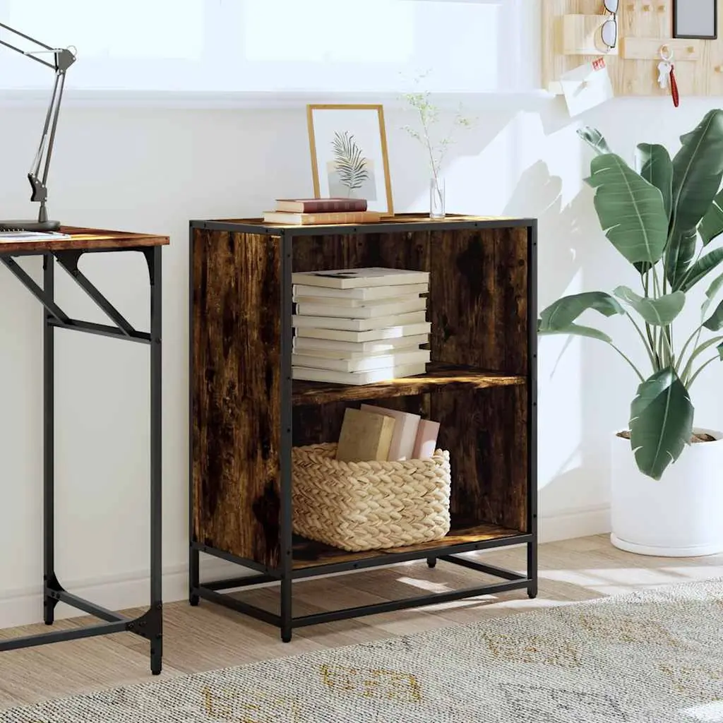 Vidaxl Book Cabinet Smoked Oak Engineered Wood And Metal Medium