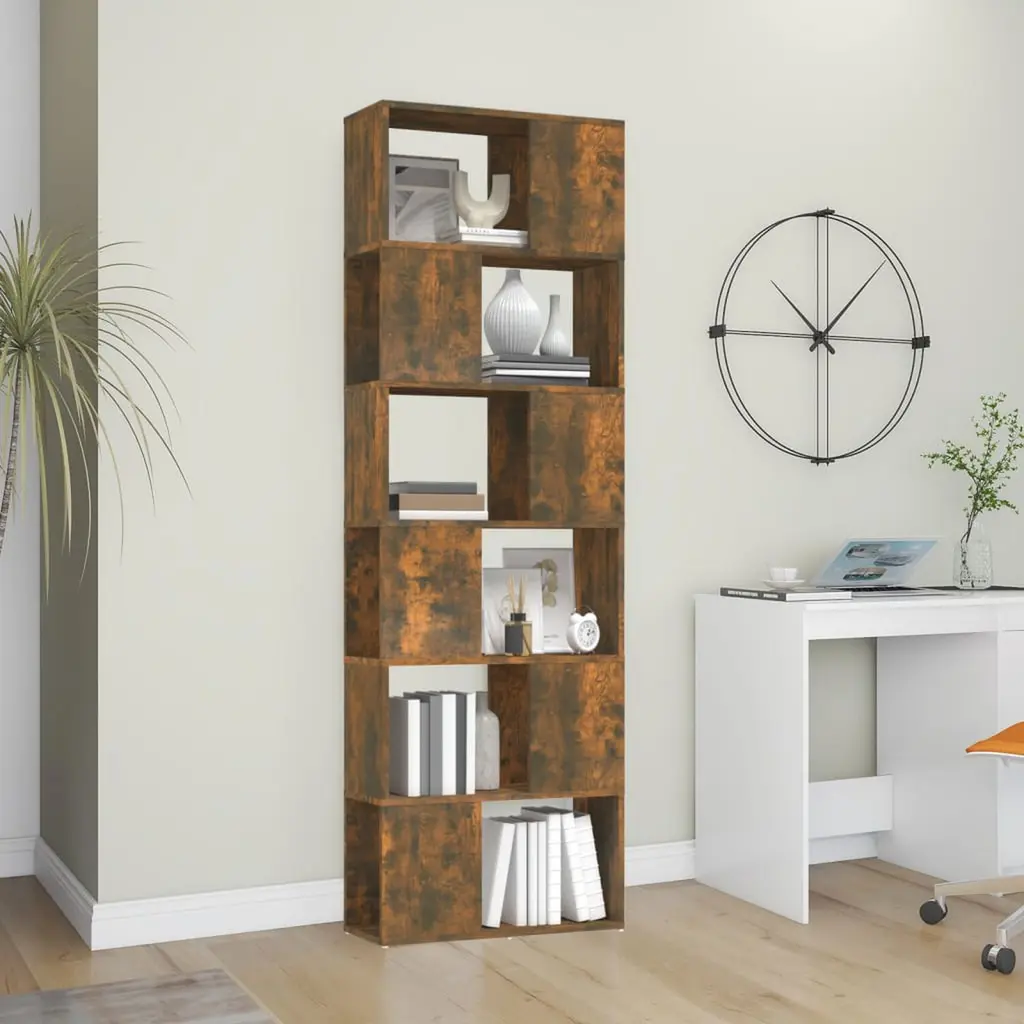 This Smoked Oak Book Cabinet is a versatile storage solution that mixes functionality with a modern look. Perfect for living rooms or offices, its minimalist style allows it to fit in with any decor while giving you plenty of space for books, decorative items, or office supplies. Count on this stylish unit to keep your stuff organized and boost the overall feel of your space with its warm tones. This book cabinet has six roomy compartments so you can keep your books, magazines, or favorite decor items neat and close by. The clever design makes sure everything stays tidy and easily accessible, regardless of use.The sleek smoky oak finish adds a classy touch while keeping a modern feel, making it a great pick for interiors aiming for simplicity and elegance.Give your living room or office a makeover with this cabinet that doubles as a stylish room divider, which sections off areas without losing any style or practicality.The engineered wood build promises durability and easy maintenance, letting you quickly clean it with just a damp cloth. Its solid construction means it will stay lovely over time.Perfect for adults, this book cabinet can be a feature in your home while offering practical storage. The smart layout of compartments lets you adapt it to suit different storage needs.