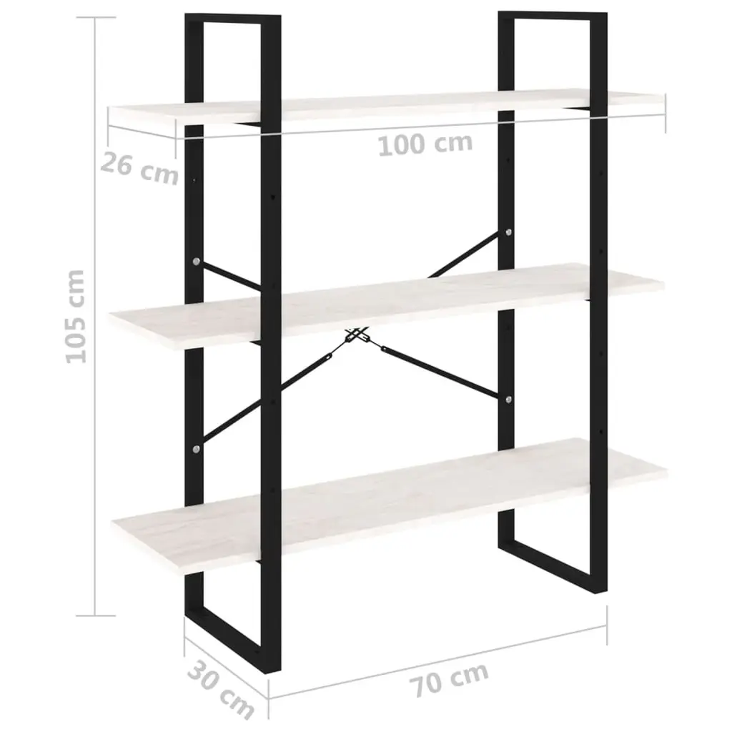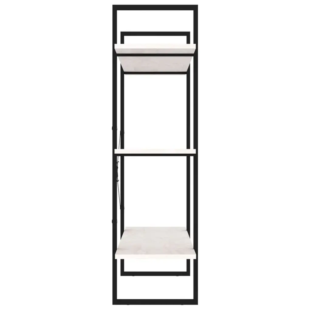 Vidaxl Book Cabinet White Solid Pine Wood, Metal 3-Tier Book Cabinet