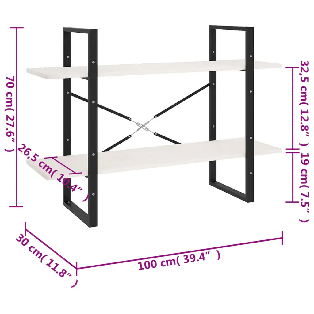 Vidaxl Book Cabinet White Solid Pine Wood, Metal 39.4x11.8x27.6 In