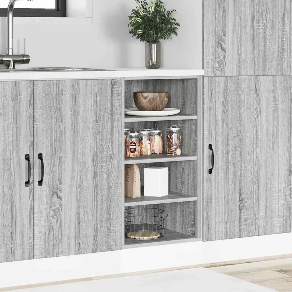 This Modern Gray Sonoma Kitchen Cabinet adds class and function to any kitchen, offering not just storage but also a touch of style. It's got a modern design, standing 32.1 in tall and measuring 17.5 in wide and 15.7 in deep. With its sleek lines and smooth finish, it fits right in with any kitchen style, making it a great choice for anyone wanting to mix practicality with a bit of flair. Height-Adjustable: The cabinet has adjustable shelves, so you can easily change the interior space to fit items of different heights. This means you can use your storage more effectively.Stylish Look: Finished in a matte gray Sonoma, this cabinet offers a modern look that fits any kitchen style. It's a great choice for anyone wanting to spruce up their kitchen aesthetics.Durable Build: Made from top-quality engineered wood, this cabinet is built to last and can handle daily wear. It holds up to 176.4 lbs, so you can count on it for all your kitchen storage needs.Space-Saving Design: The wall-mounted design maximizes floor space, making it perfect for smaller kitchens. It lets you effectively use wall space, keeping everything organized and easy to reach.Easy Assembly: The cabinet comes with clear assembly instructions and all the mounting bits you’ll need, making it simple to set up. Just make sure to install everything properly, especially the adjustable feet for the best use.