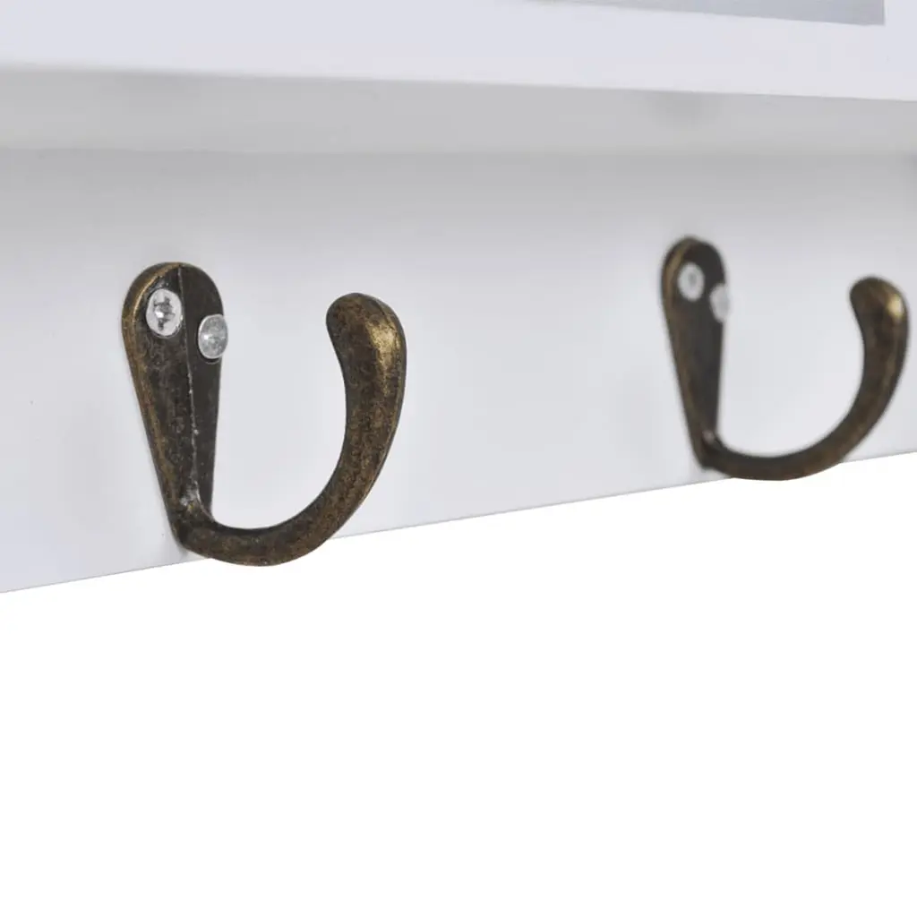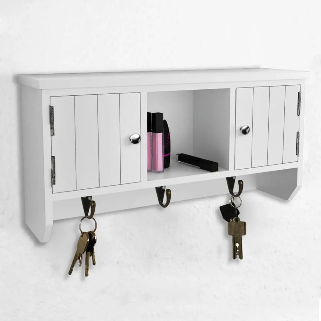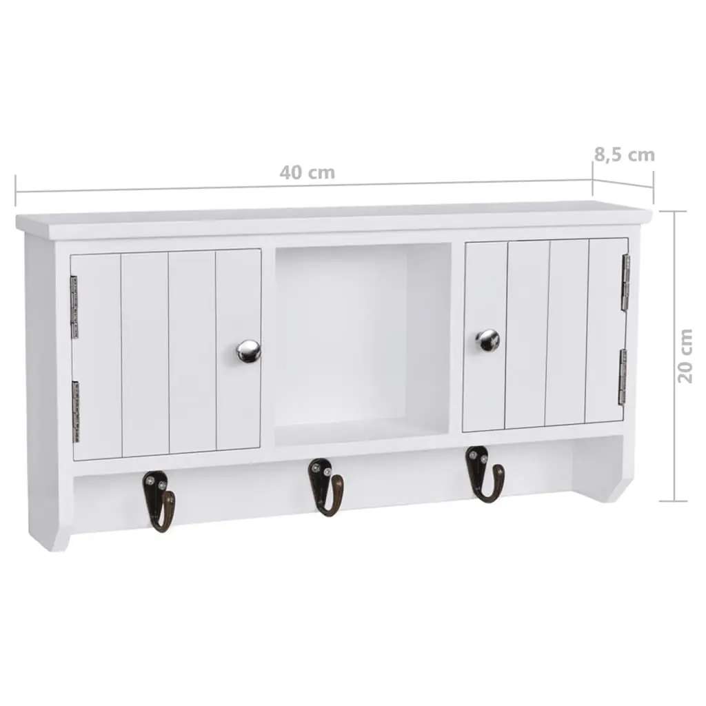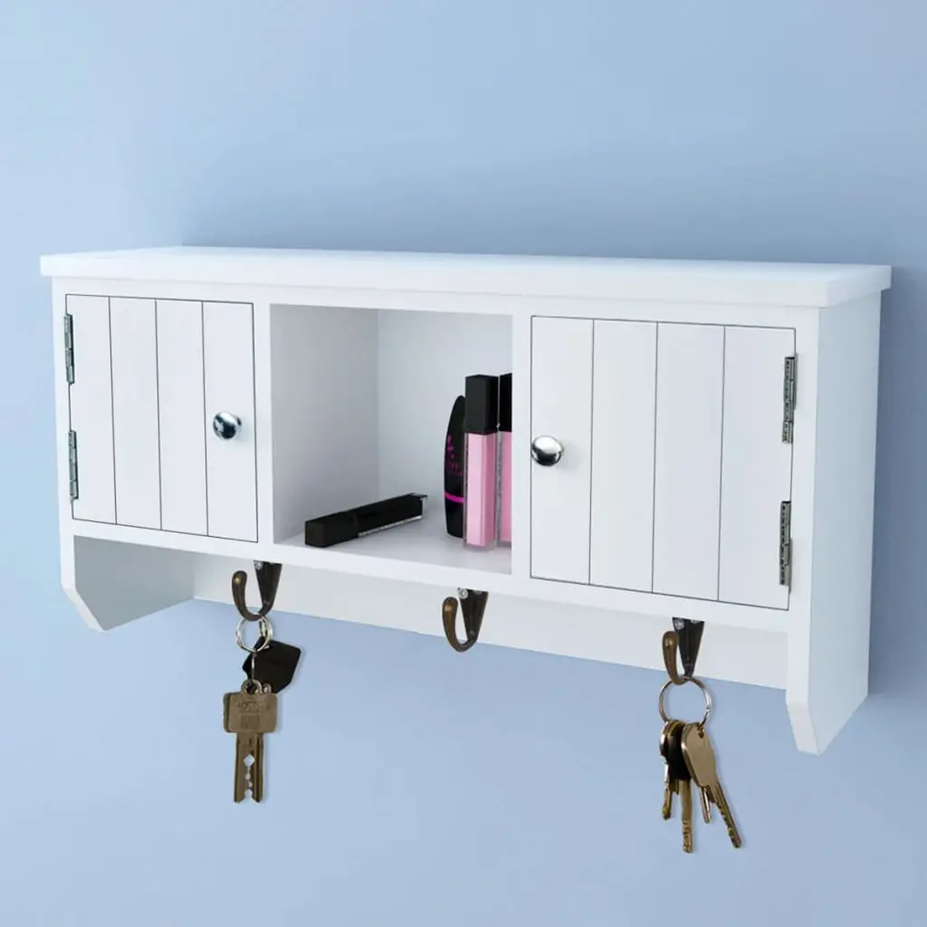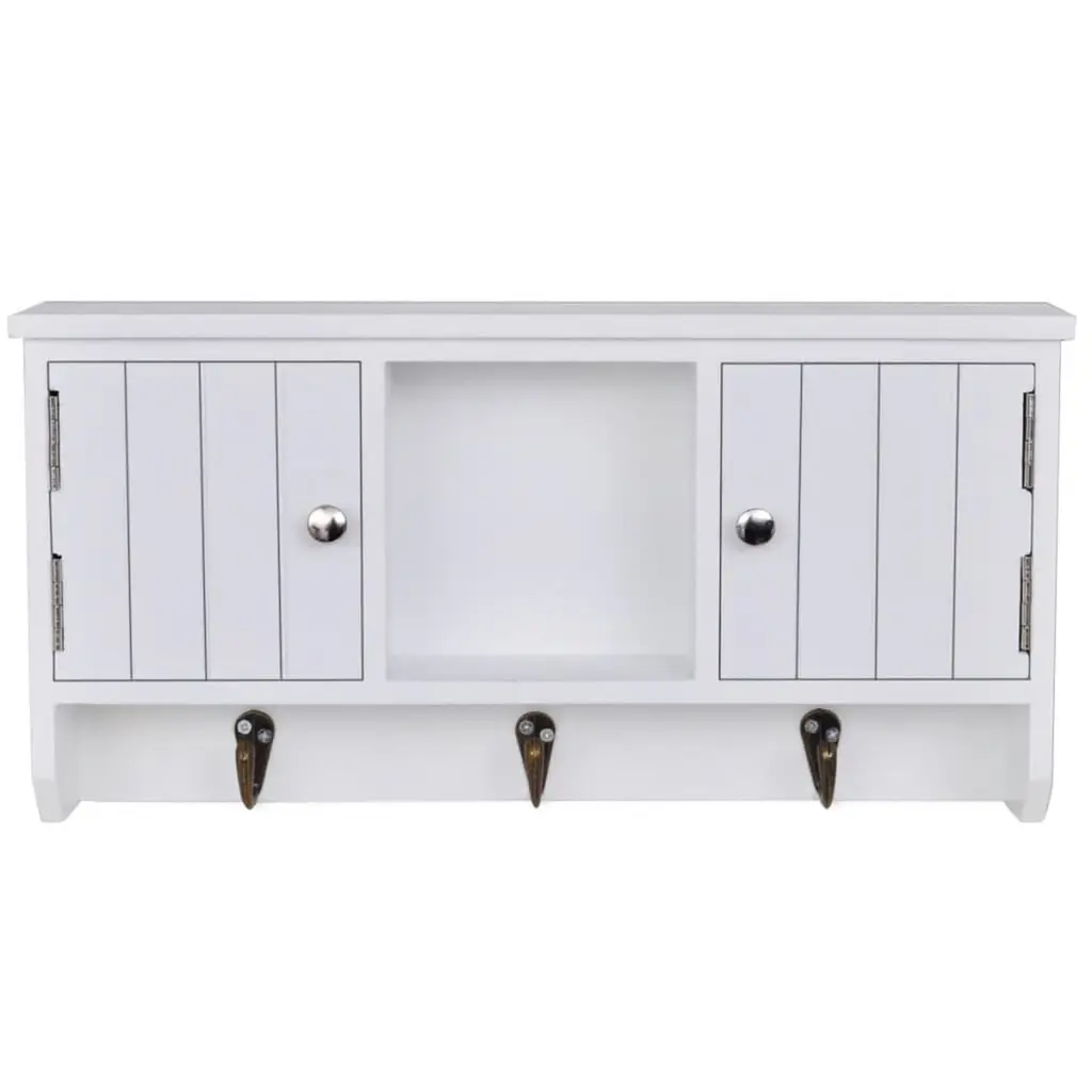 This Antique White Wall Cabinet is a stunning storage solution that combines functionality and style. With its classic look, it fits perfectly in any indoor space, especially hallways or entryways, providing a stylish way to keep your personal items organized and elevating your home’s decor. Ample Storage: This spacious wall cabinet has loads of room for your keys, accessories, or other small items, keeping everything easy to find whenever you need it.Stylish Design: With its soft antique white finish, this cabinet adds a touch of class to your hallway and easily blends with various styles, from classic to modern.Durable Materials: Built from engineered wood and robust steel, this cabinet is designed to handle everyday use and keeps looking great.Convenient Hooks: The handy hooks let you hang keys and other frequently used items right where you need them, making life easier.Easy to Clean: A quick wipe of the painted surface is all it takes to keep it looking fresh and new, making maintenance super simple.