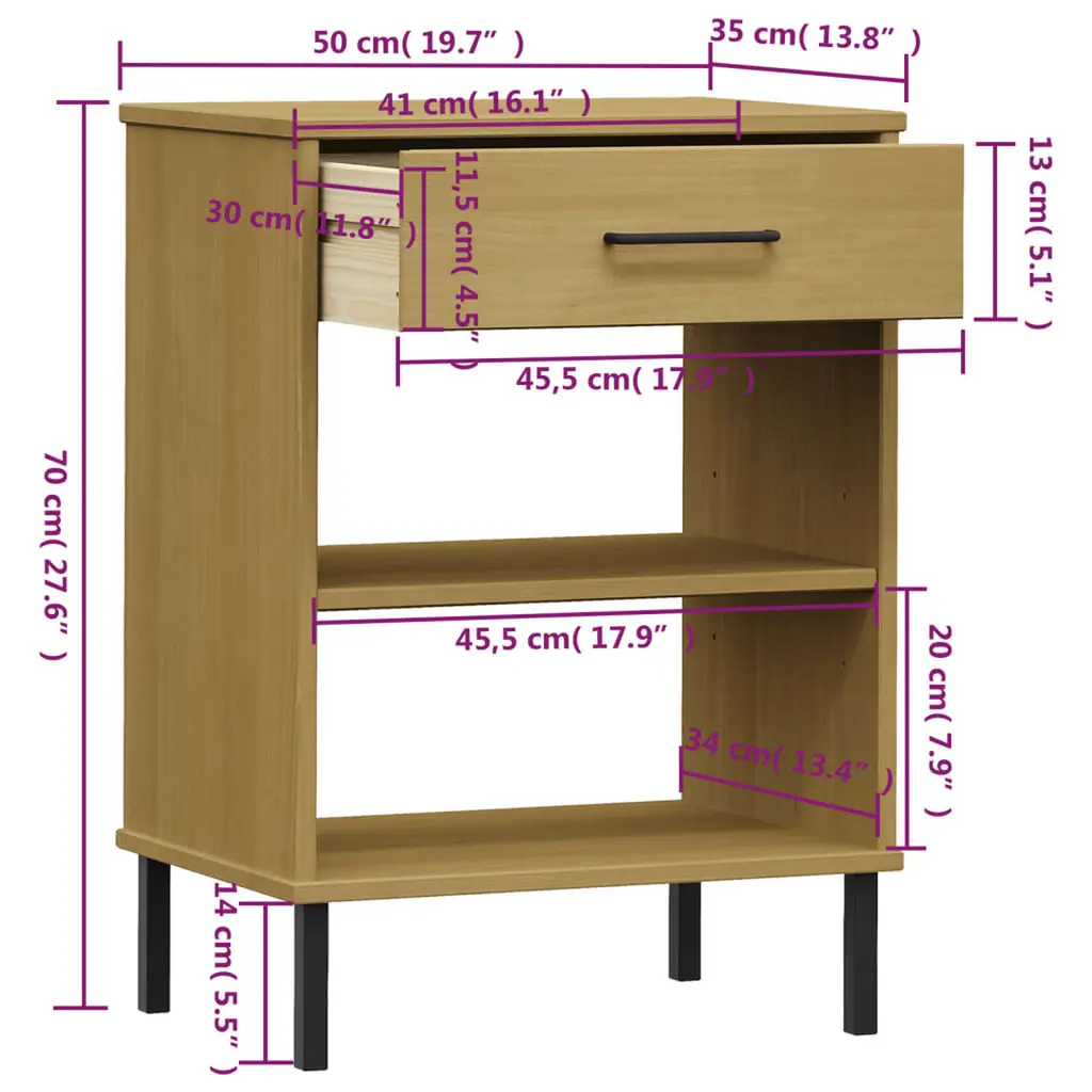 Vidaxl Console Cabinet Brown Solid Pine Wood And Metal Medium