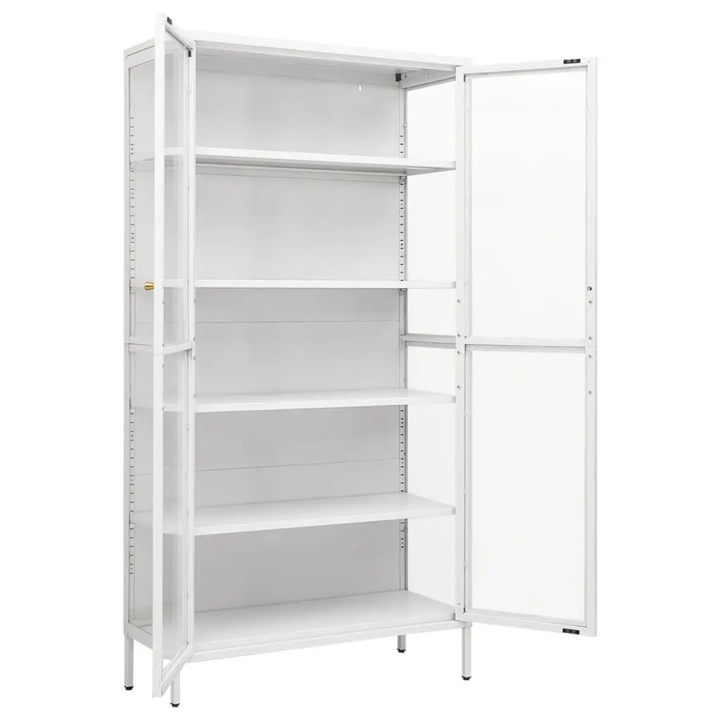 This display cabinet is a lovely addition to any living space, with a bright white finish that adds elegance. Designed to show off your favorite bits, it fits in perfectly with modern decor, lifting the vibe of your home while being practical. Stylish Appearance: The matte finish gives it a non-reflective look that suits its modern design and works well in any room.Durable Materials: Built with tough steel and tempered glass, it's made for strength and longevity, making it perfect for showing off your collectibles or decor.Space Optimization: With four adjustable shelves, you can customize it to fit items of all heights and enhance your storage game.Wall-Mountable: Designed to be securely fixed to the wall, it saves floor space while keeping everything looking neat and tidy.Easy Maintenance: The materials make it super easy to clean, so your display stays looking great with minimal effort.