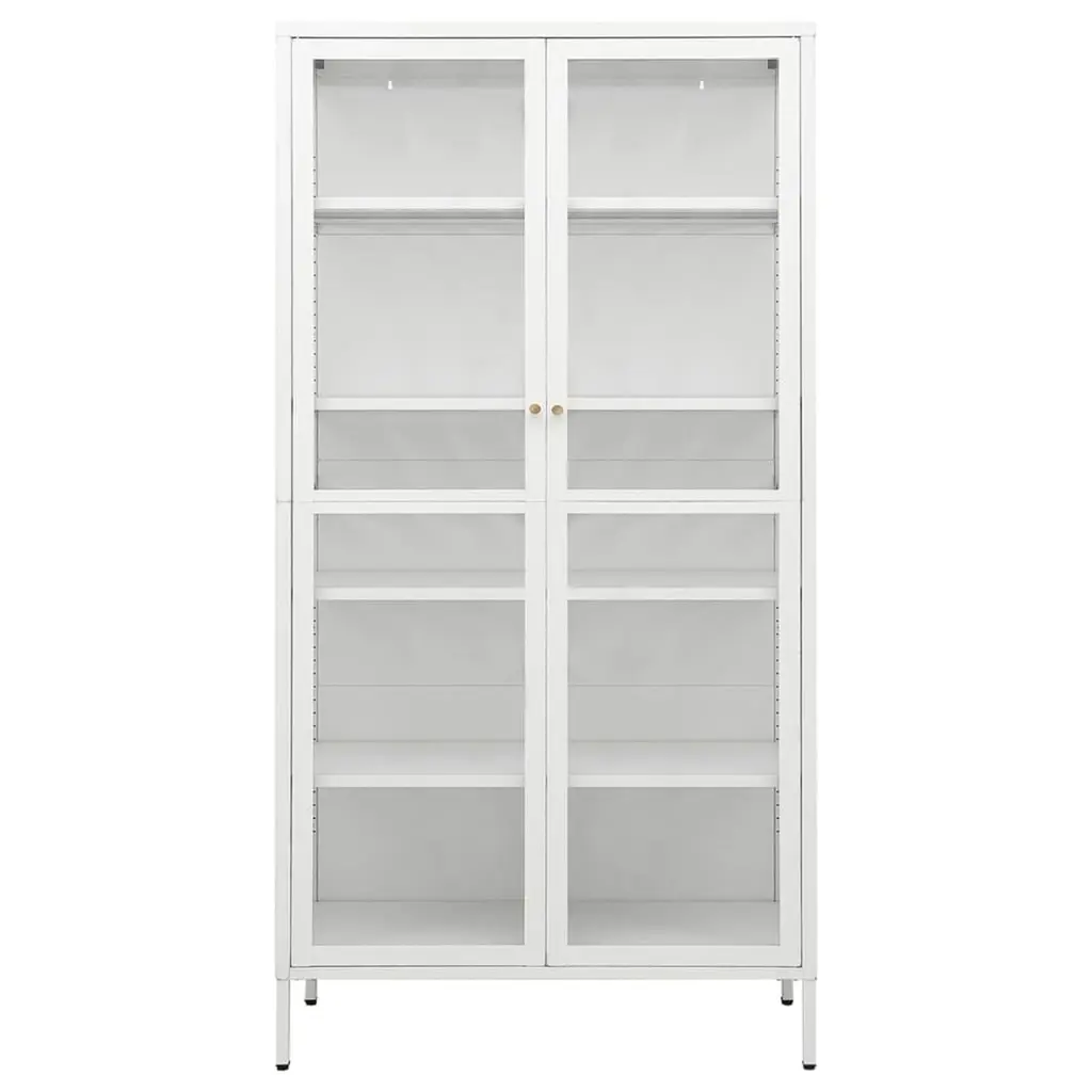 Vidaxl Display Cabinet White Steel, Tempered Glass Large Display Cabinet