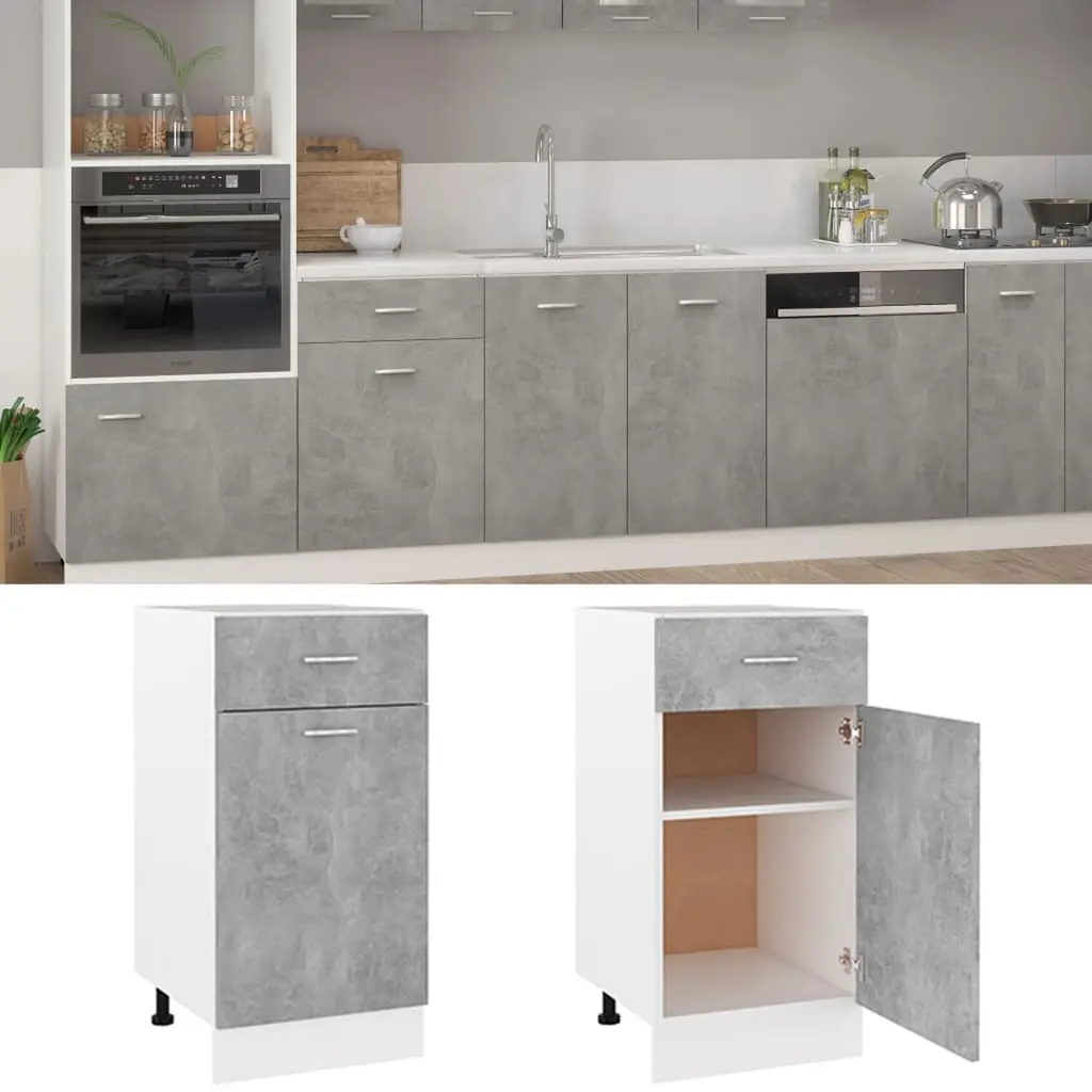 This Concrete Grey Drawer Bottom Cabinet is the perfect blend of function and modern style, making it a top pick for any kitchen. With its rectangular shape and tidy lines, this cabinet not only works hard but also dresses up your home while sorting out your storage needs. Ample Storage: This cabinet has loads of room for all your kitchen essentials, utensils, or dishes. Its generous capacity makes it easy to keep everything organized. Simplistic Design: The minimalist aesthetic of this cabinet features a matte finish that fits seamlessly into modern settings and adds a timeless touch to your kitchen. Durable Material: Made from engineered wood, this storage piece is built to handle daily wear and tear. Its solid construction offers reliability while keeping a chic look. Adjustable Shelves: Enjoy the convenience of adjustable shelves so you can customize the interior to accommodate what you need to store. It easily fits taller items, making the cabinet even more useful. Easy Assembly: With clear instructions and minimal tools required, putting together this cabinet is a breeze, making it quick and simple to set up in your kitchen.