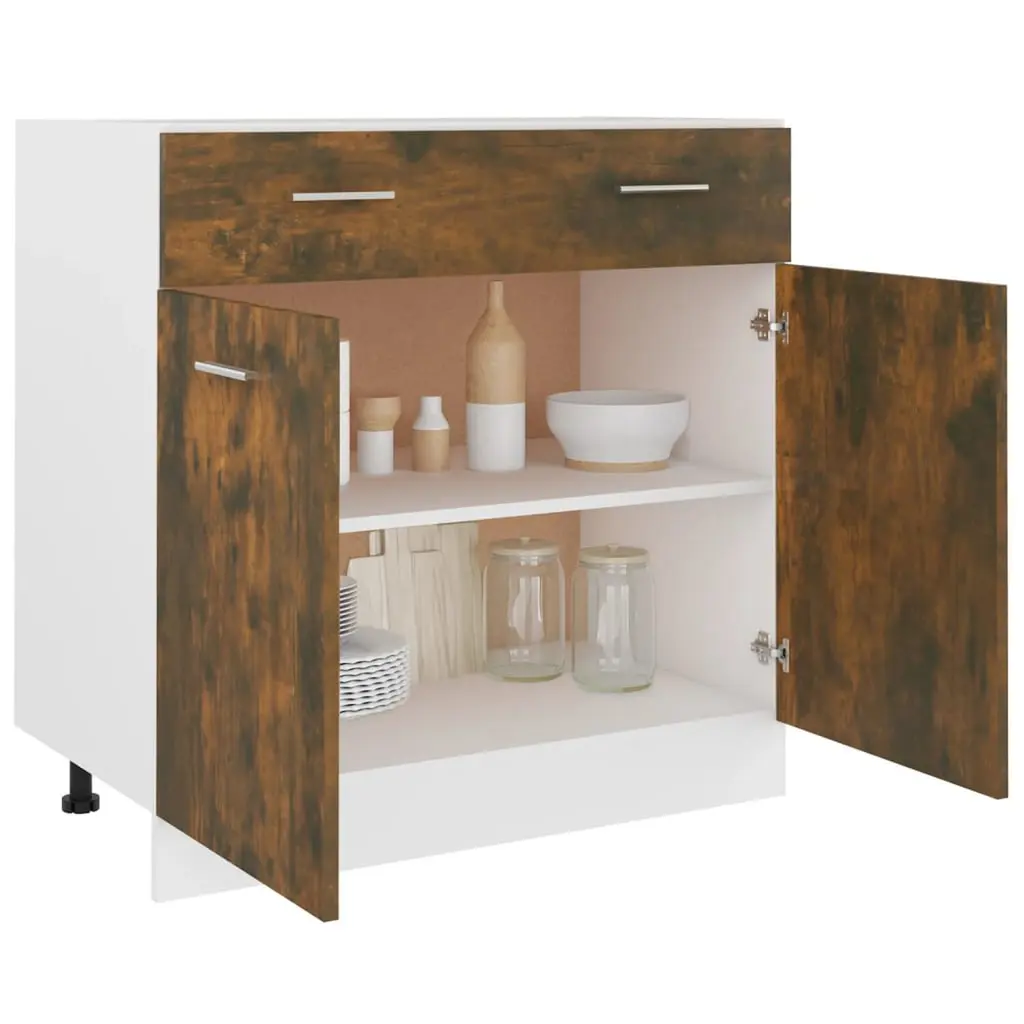 Vidaxl Drawer Bottom Cabinet Smoked Oak Engineered Wood Medium Cabinet