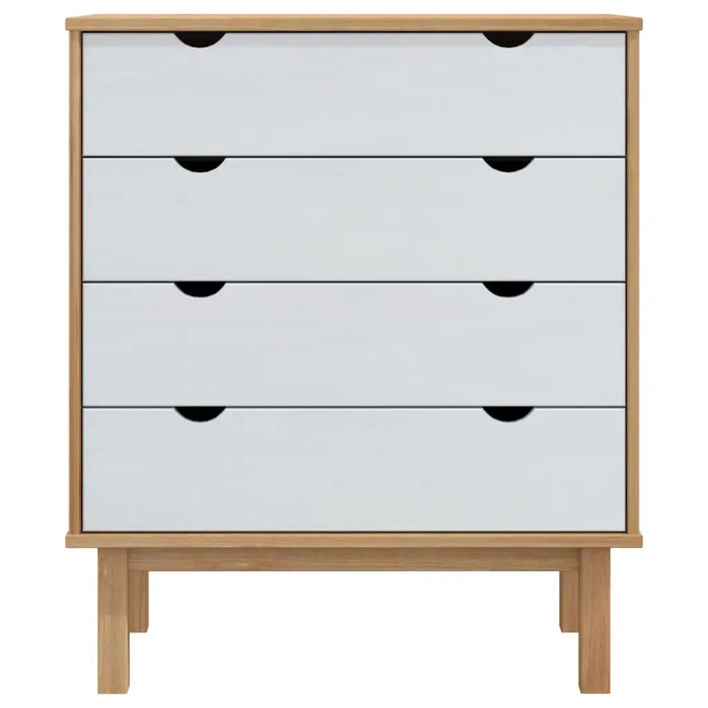Vidaxl Drawer Cabinet Brown And White Solid Pine Wood Medium Cabinet