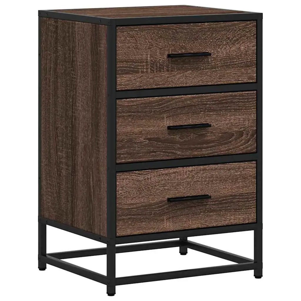 This industrial-style drawer cabinet mixes smart design with modern looks, making it a great fit for your home. It's all about being practical but still looking good, giving you loads of storage while sprucing up any room, whether it's a bedroom, hallway, or living area. Ample Storage: With three spacious drawers, this cabinet gives you loads of room for household items, keeping things organized and tidy. The drawers' generous size suits everything from clothing to documents.Sturdy Construction: Built with high-quality engineered wood and metal, this cabinet brings reliability and durability that withstand daily use. It's got moisture-wicking properties to ensure it lasts in changing humidity.Modern Industrial Style: Showcasing a sleek smoked oak finish teamed with black accents, this cabinet embodies industrial design while blending in beautifully with diverse decor. The matte finish adds a chic touch that enhances contemporary aesthetics.Versatile Use: Whether in a living room for stylish storage, a hallway for keeping essential items in check, or a bedroom for clothing and accessories, this cabinet fits right in and boosts functionality throughout your home.Convenient Size: With dimensions of 27.6 in by 16.1 in by 22.0 in, this cabinet is made for practicality; its compact design still offers significant room for storage, making it perfect for urban living where space is tight.