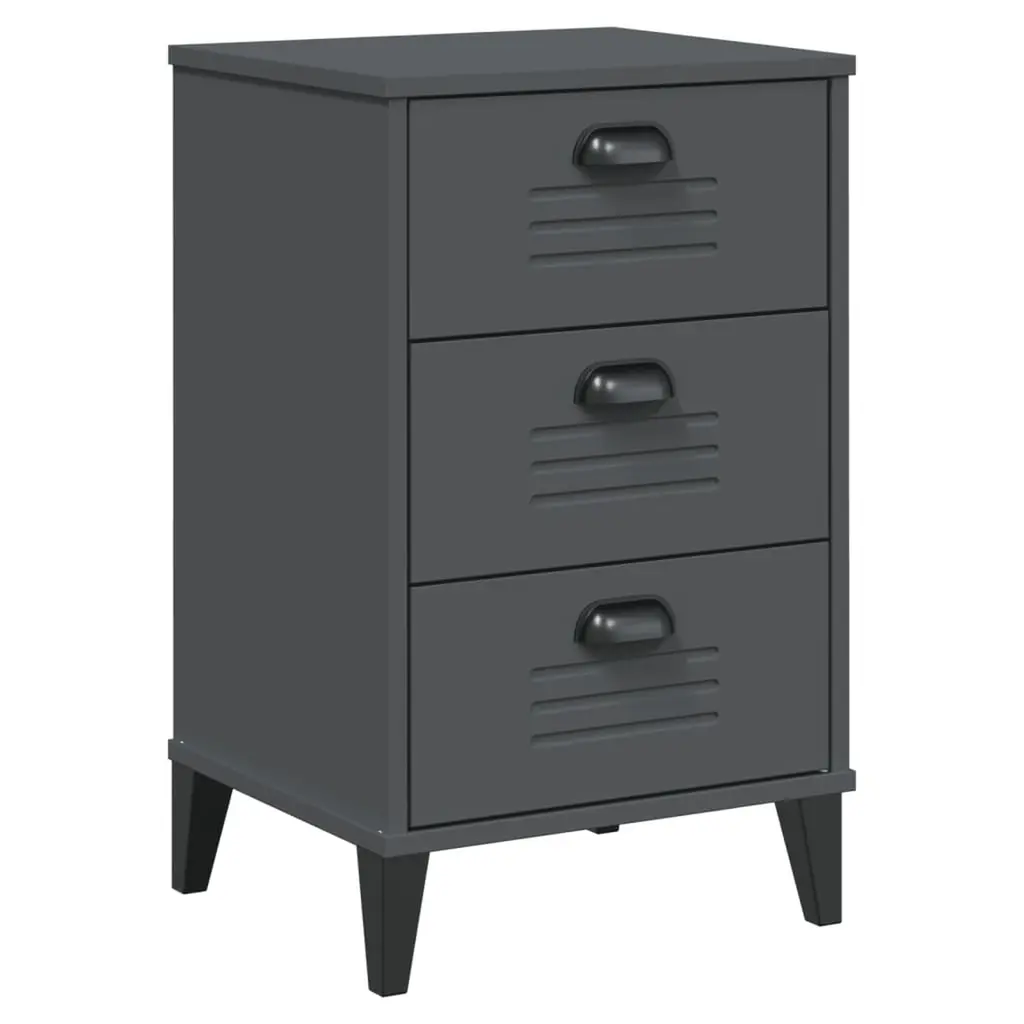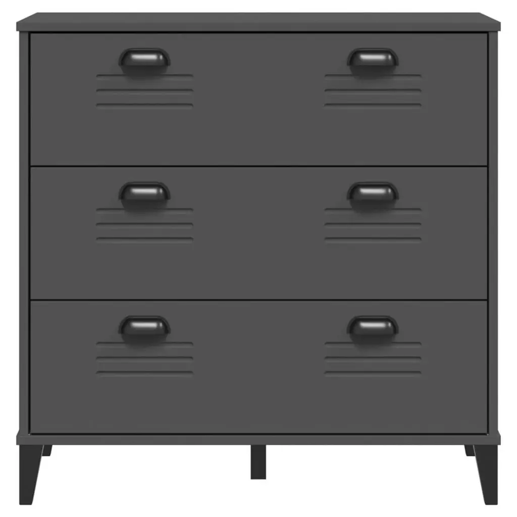 This drawer cabinet is a smooth mix of style and functionality, just right for today’s living spaces. Its sleek anthracite grey finish and industrial design fit right in with modern decor while offering loads of storage options. Debonair Aesthetic: The rich anthracite grey adds a modern touch, sprucing up your room's vibe.Ample Storage: With three roomy drawers, it offers plenty of space, making it easy to grab your essentials.Sturdy Construction: Built with tough engineered wood, it’s made to last while looking fab.Easy Maintenance: The matte finish means cleaning is simple, just a quick wipe with a dry cloth keeps it looking good.Versatile Configuration: This cabinet fits right into different spaces, making it a top choice for home offices or lounges.