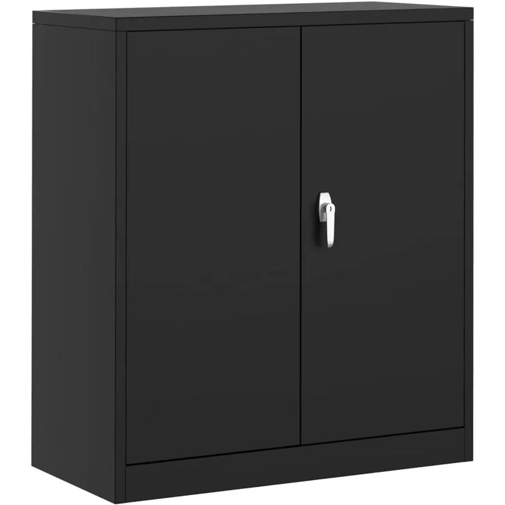 This File Cabinet showcases a striking industrial design, perfectly merging aesthetics with functionality. It features a robust build and an elegant black finish, tailored for both home office settings and professional environments, ensuring that all your important documents are securely stored and easily accessed. Made of top-notch powder-coated steel, this cabinet resists wear and tear, so it'll last ages.Its two adjustable shelves let you vary your storage, easily accommodating files of different sizes for any workspace.The locking mechanism gives extra security, perfect for keeping confidential documents and valuables safe.Designed to fit seamlessly in modern offices, its sleek look matches various interior styles, lifting your workspace vibe.With dimensions of 35.4 in in length, 15.7 in in width, and 41.3 in in height, it offers loads of storage without cluttering your office.