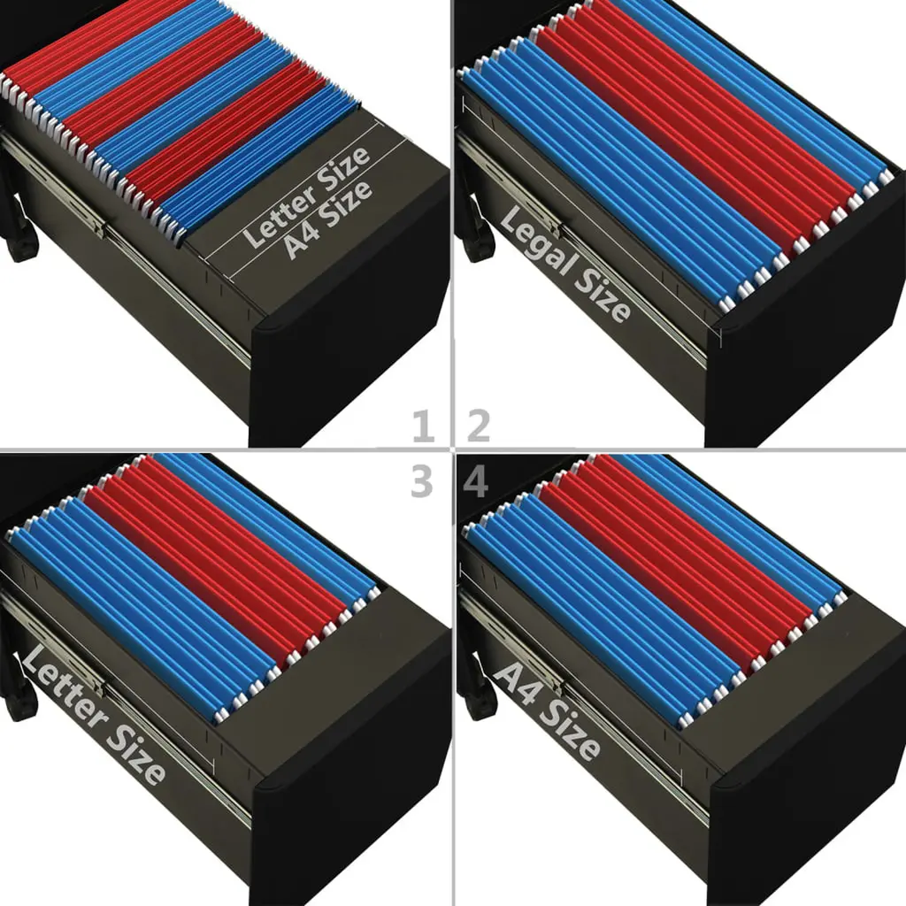 This mobile file cabinet is a must-have for any office or home space. Its sleek black design and modern look make it both functional and stylish, making it a great fit for your workspace or study. Ample Storage: With three full-extension file drawers, this cabinet is perfect for storing documents, supplies, and more. You’ll have plenty of room to keep your workspace organized.Secure Lock: The cabinet features a robust cam lock mechanism that secures all contents, giving you peace of mind when storing sensitive documents or valuables.Smooth Mobility: Thanks to its five lockable wheels, moving this file cabinet wherever you need it is effortless. You can easily relocate it within your office space as needed.Durable Finish: The powder-coated steel surface is not only pleasing to the eye but also heat resistant, ensuring your filing cabinet withstands everyday use while maintaining its sleek exterior.Modern Design: The cabinet’s contemporary lines and modern finish complement any office décor, adding a touch of professionalism to your work environment.