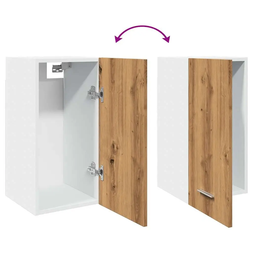 This hanging cabinet is a must-have for any kitchen, blending style with usefulness. With its trendy artisan oak finish and smart design, it offers a practical storage option for your kitchen gadgets, cookware, or artsy supplies, lifting the overall look of your space and making sure everything's easy to grab. Ample Storage Space: With loads of space that easily fits bowls, plates, and even large kitchen gadgets, this cabinet keeps your kitchen neat and organized. You get to use vertical space maximally so you don’t have to give up floor space for extra storage.Stylish Design: The artisan oak finish not only makes the cabinet tough but also matches modern decor styles perfectly, adding a touch of elegance to your kitchen. Plus, the matte finish brings warmth to your home.Wall-Mounted Convenience: Made to be mounted right on the wall, this cabinet keeps your stuff off counters and floors, giving a sleek look while saving precious space. Perfect for small kitchens or any room tight on space.Sturdy Construction: Made from engineered wood, this cabinet is tough enough for daily use and still looks great. Its strong design supports a good amount of weight, allowing you to store heavier items without worry.Easy Maintenance: Keeping this cabinet clean is quick and simple thanks to its smooth surfaces. Just wipe it down with a damp cloth to keep it looking sharp, making upkeep a breeze.