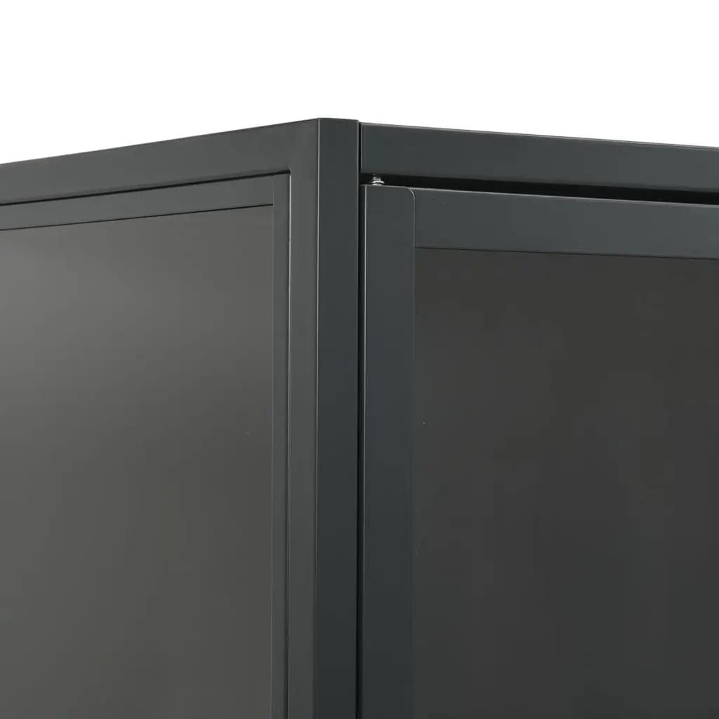 This highboard is one handy storage solution that mixes functionality with a modern design, making it a must-have for your living room. With a brilliant anthracite finish and glass accents, this highboard looks great while offering ample space for your decor and your personal stuff. Ample Storage Space: The highboard comes with two spacious drawers and adjustable shelves that help you organize your stuff easily, keeping everything accessible yet neatly tucked away.Sleek Design: With clean lines and modern shape, this highboard acts as a stylish statement piece while giving you practical storage solutions.Adjustable Shelves: The shelves can be adjusted for different height items, perfect for displaying books, decorative pieces, or plants that need varying shelf heights.Durable Construction: Built with high-quality steel and tempered glass, this highboard is made to last and holds a total load capacity of 198.4 lbs.Easy Maintenance: The surfaces are easy to clean, so you can keep your highboard looking sharp with minimal effort.