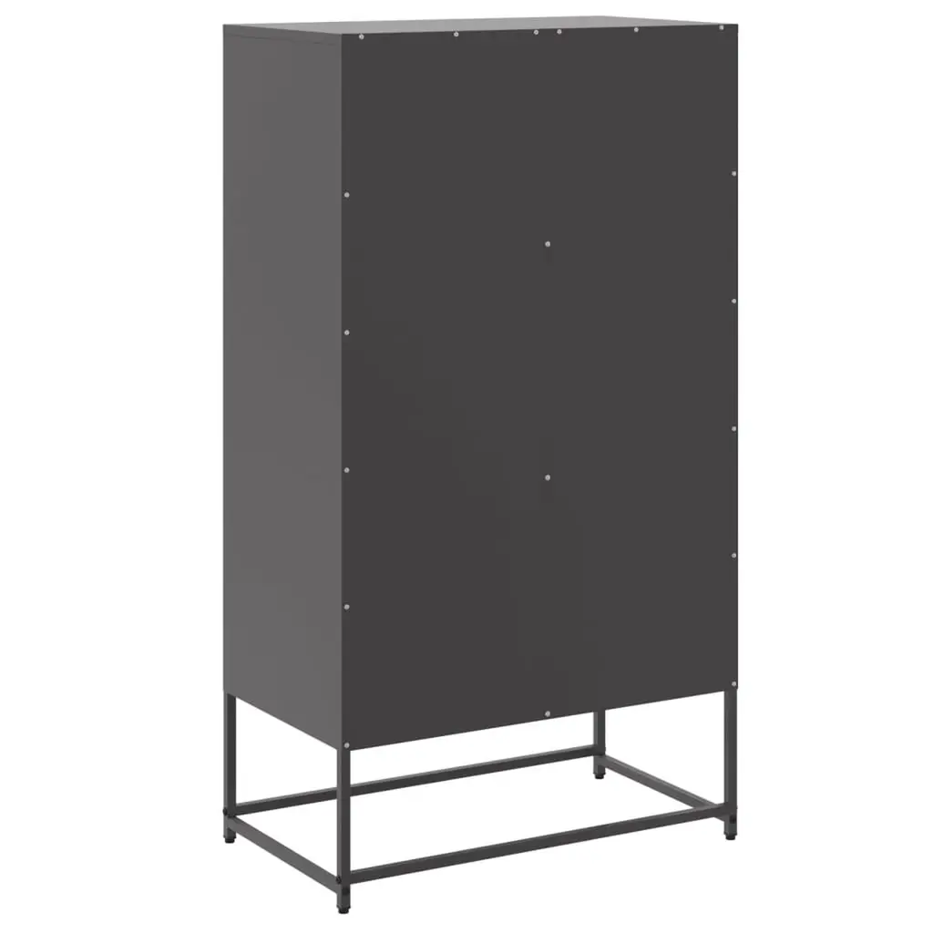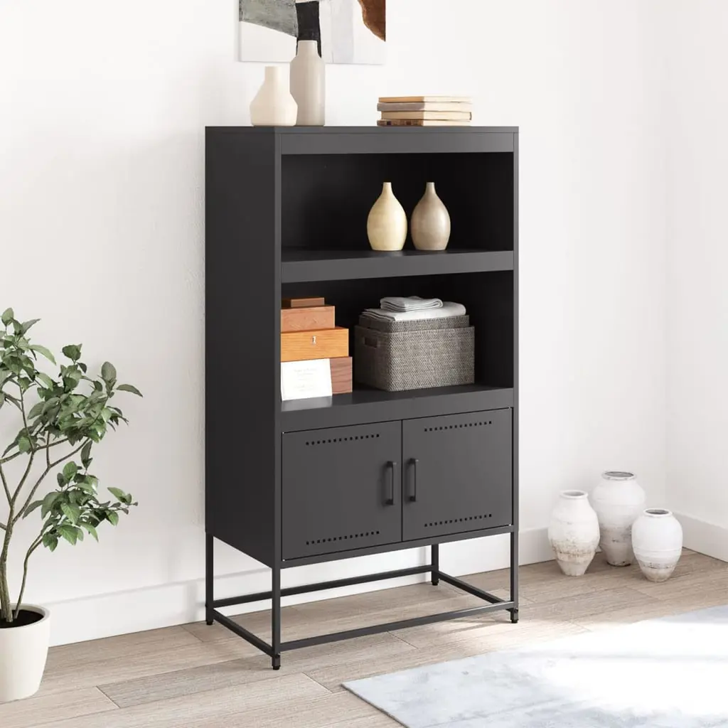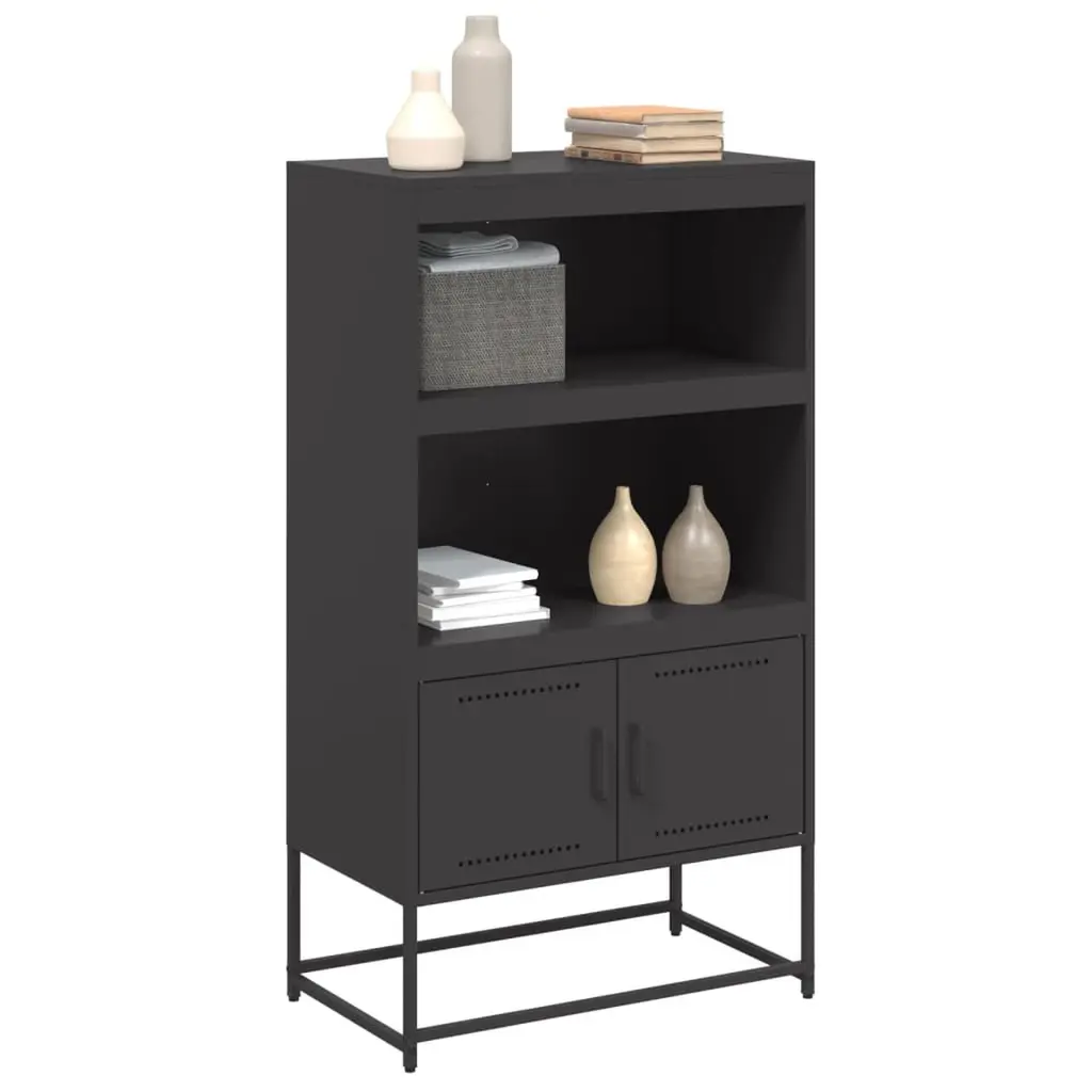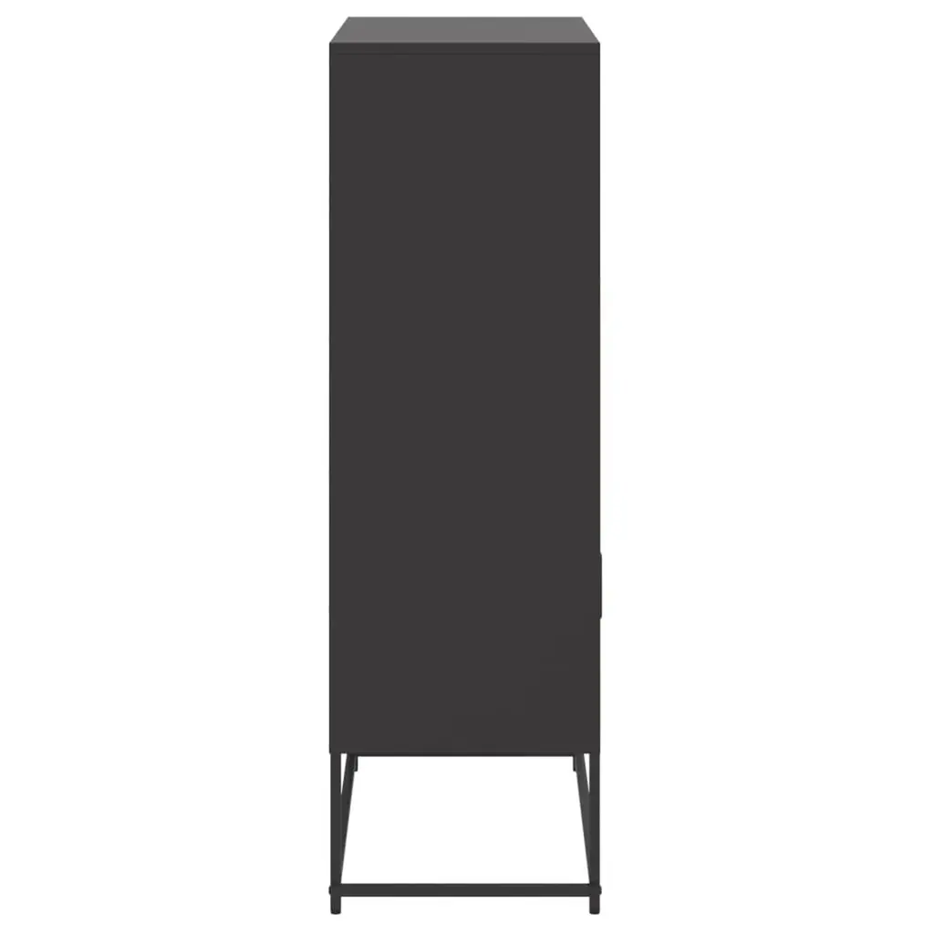 This highboard perfectly blends style and utility, giving you a chic storage option for spaces like your living room or bedroom. Made from sturdy steel, its sleek matte black finish adds a modern vibe to your decor while helping you keep your stuff organized and easy to find. Ample Storage Space: With various compartments and two metal shelves, this highboard efficiently organizes your belongings, from books to decorative items.Industrial Design: The raw, matte black finish and metal structure resonate with urban loft aesthetics, making it the perfect addition to any modern home.Durable Build: Made from high-quality steel, this highboard promises long-term durability while resisting wear over time.Versatile Room Placement: Suitable for both living rooms and bedrooms, it complements various styles while providing functional storage.Easy Maintenance: Smooth surfaces are easy to clean, letting you keep it looking sharp with minimal effort, ensuring it shines in any setup.