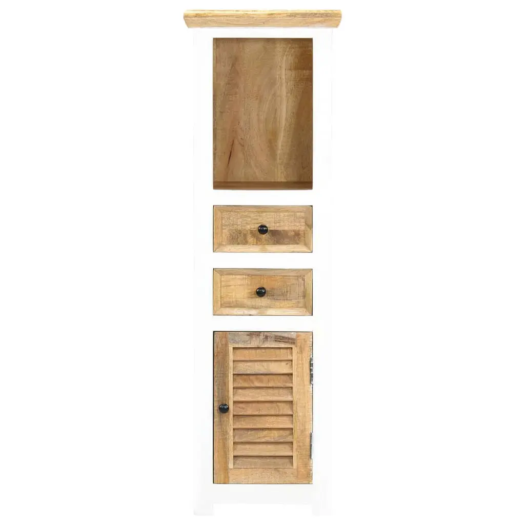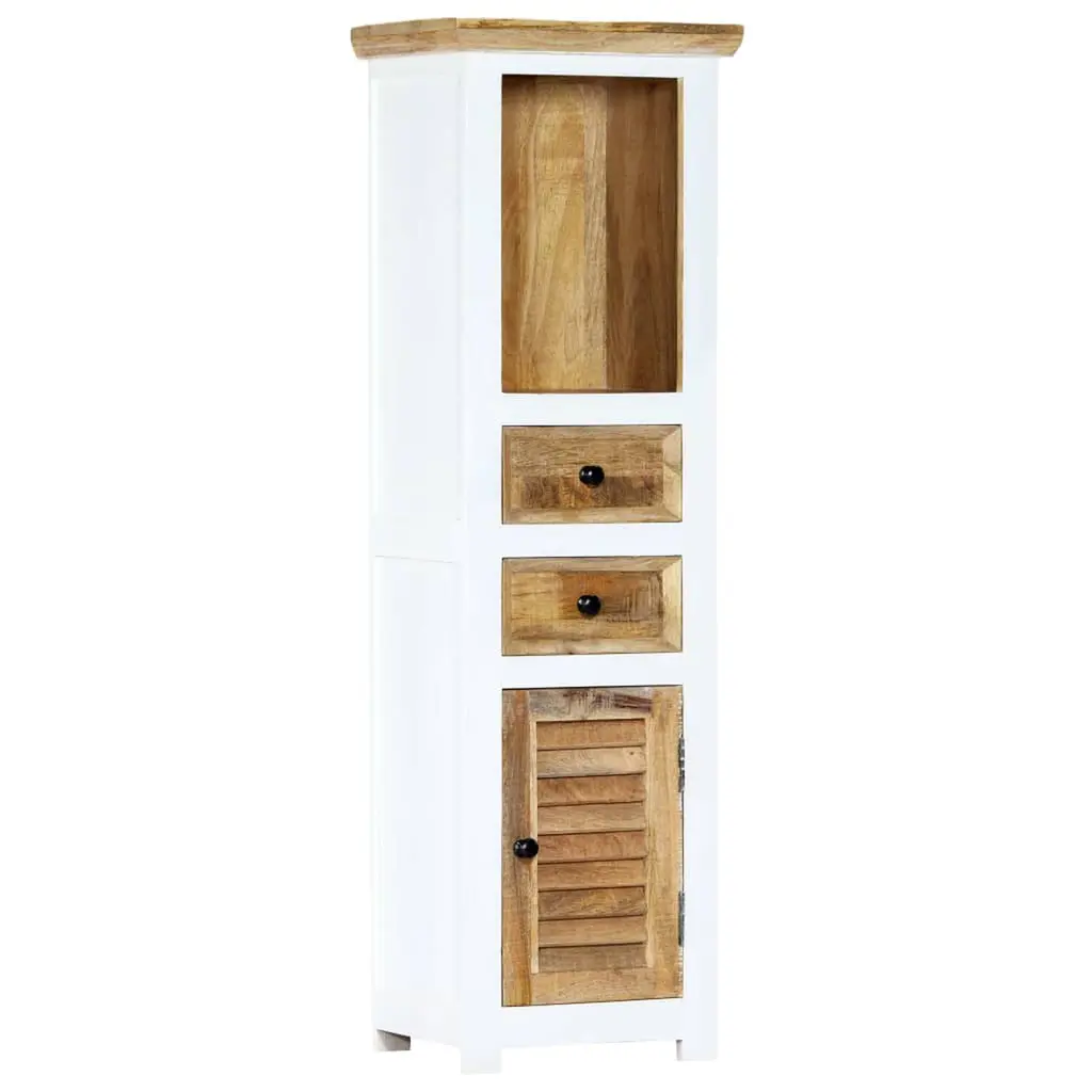 This rustic highboard combines style with practicality for your living space. It's mainly made from solid mango wood, and its lovely white and brown finish really lifts the look of any room while offering heaps of storage for your essentials like books, magazines, and other bits you want to keep tidy. It's sturdy and well-made, perfect for long-term use in living rooms, bedrooms, and hallways. Loads of Storage Space: This highboard has two traditional drawers and a solid wood door, giving you loads of room to tidy up your stuff and keep your space neat. Perfect for stashing away books, toys, or decorative bits. Adjustable Shelving: Comes with an adjustable shelf that you can move around to fit different-sized items, making this highboard a flexible storage option for all sorts of things. You can arrange your space just how you want it! Sturdy Build: Made from solid mango wood, known for its strength and durability, plus the engineered wood frame makes it even tougher without hurting the style. This means your highboard will stay part of your home for years ahead. Stylish Finish: The nice mix of smooth white and rustic brown brings a touch of class to any room. Its chic look fits well with both modern and rustic homes, giving an inviting vibe that your guests will love. Space Efficient Design: At a compact 15.7 x 11.8 x 50.4 in, this highboard saves space and is just right for tighter spots without giving up on functionality. It fits like a dream in apartments, small homes, or in snug corners.