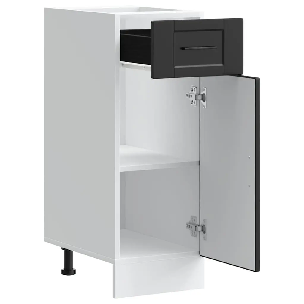 This Kitchen Base Cabinet redefines storage in style, combining function with good looks. Made from engineered wood, its sleek black finish adds a modern flair to any kitchen, making it a practical but stylish storage choice for those who appreciate both design and function. Ample Storage: This cabinet has loads of room to keep your kitchen gear organized and at hand, featuring a big drawer and adjustable shelves so you can customize the space.Height-Adjustable Feet: Comes with adjustable feet for stability on uneven floors, so you can set it up just right for your kitchen.Durable Engineered Wood: Made from high-quality engineered wood, this cabinet is tough and stylish. It’s moisture-resistant, so your things are safe from daily wear and tear.Contemporary Design: The matte black finish and modern lines give your kitchen a stylish edge. It matches everything from minimalistic vibes to industrial styles.Easy Maintenance: With its smooth surface, it’s a breeze to clean with a damp cloth, so you can keep it looking good with hardly any hassle.