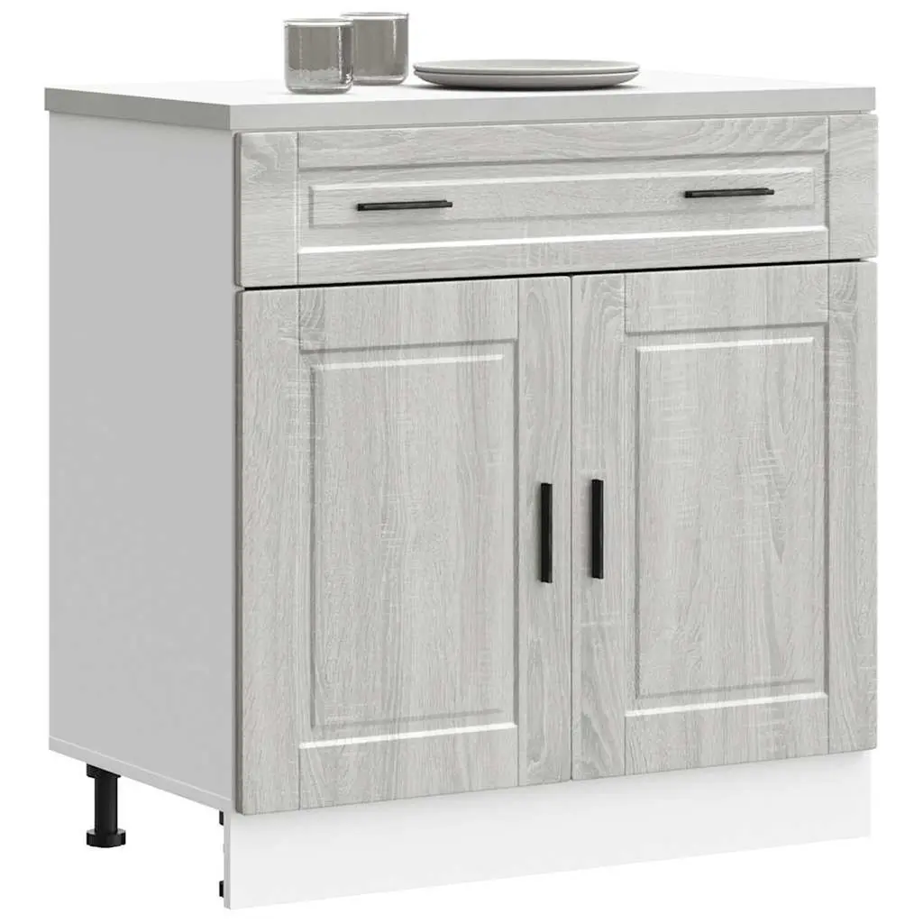 This kitchen base cabinet redefines storage with its sleek and contemporary design, perfectly complementing today's modern kitchens. Crafted from grey sonoma engineered wood, it exudes a subtle elegance while providing practical solutions for organizing your kitchen essentials, making it ideal for anyone looking to optimize their kitchen space. Ample Storage: This cabinet has two large compartments, perfect for stashing bowls, plates, and utensils, so you can get to your kitchen essentials without any hassle.Height Adjustable: With its adjustable feet, the cabinet can be set up just right on any uneven kitchen floor for added stability.Durable Material: Made from quality engineered wood, this cabinet is built to last and stands up to daily kitchen use.Stylish Design: The modern grey sonoma finish works with all sorts of decor, making it a brilliant addition to your kitchen while keeping things clean and tidy.Easy Maintenance: Its wipeable surface makes cleaning a breeze, helping you maintain a smart and stylish storage solution.