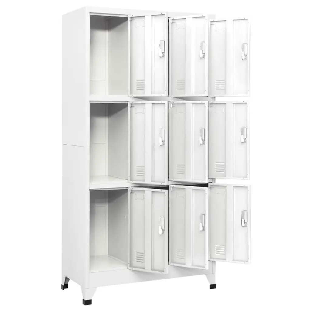 This locker cabinet is a great addition to any office or utility room, designed to help you get organized with style and security. Its solid steel build gives it an industrial look, while each of the nine compartments is both useful and attractive, making it ideal for adults needing to safeguard their belongings at work. Specifications:Color: Gray Material: Metal SteelFinish: Powder-Coated Indoor/Outdoor: Indoor OnlyNumber of Doors: 9Cover Included: NoRoom: OfficeCapacity: 9 compartmentsMaximum Weight: 264 lbsDimensions: 17.7 x 35.4 x 70.9 in (W x L x H)Leg Height: 2 inWeight: 103.6 lbsLadder: NoBrand: vidaXLDelivery Contains: Locker cabinetAssembly Required: YesSKU: 20157EAN: 8718480000000.000000000