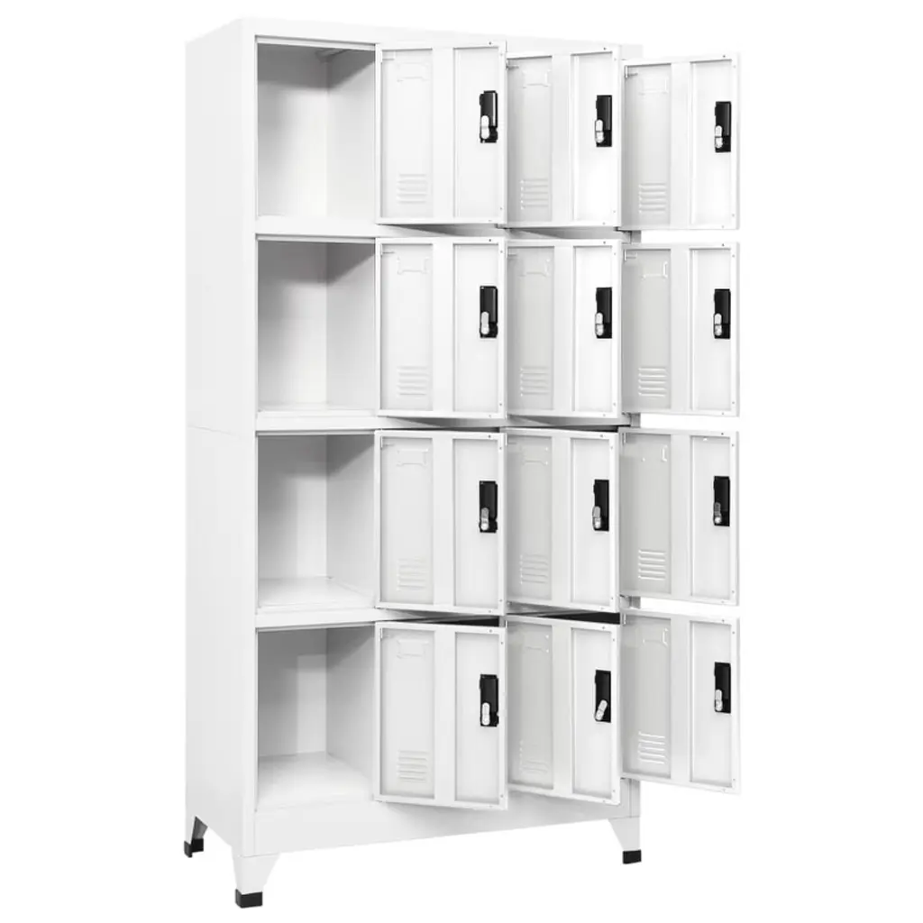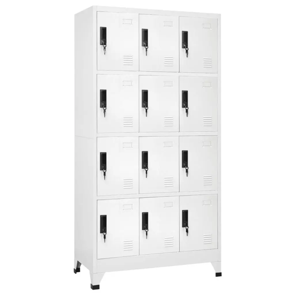 This locker cabinet is a must-have storage option for any modern office or home, blending function and style perfectly. Its clean white steel finish gives a fresh vibe while offering loads of room for organizing clothes, paperwork, and cleaning supplies—ideal for schools and workplaces. Specifications:Color: White Material: Metal SteelFinish: Powder-Coated Indoor/Outdoor: Indoor OnlyNumber of Doors: 12Cover Included: NoRoom: OfficeCapacity: 33.1 lbs per compartmentMaximum Weight: 396.8 lbsDimensions: 35.4 x 35.4 x 70.9 in (W x L x H)Weight: 9741.5 lbsLadder: NoBrand: vidaXLDelivery Contains: Locker cabinet, keys, wall attachment deviceAssembly Required: YesSKU: 339812EAN: 8720286701188