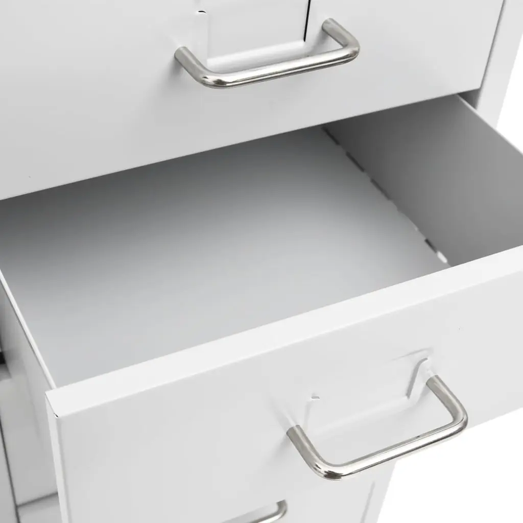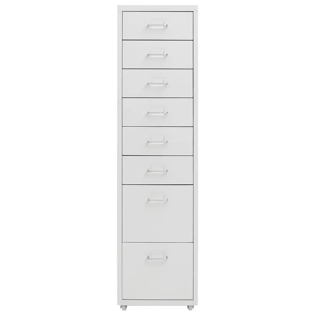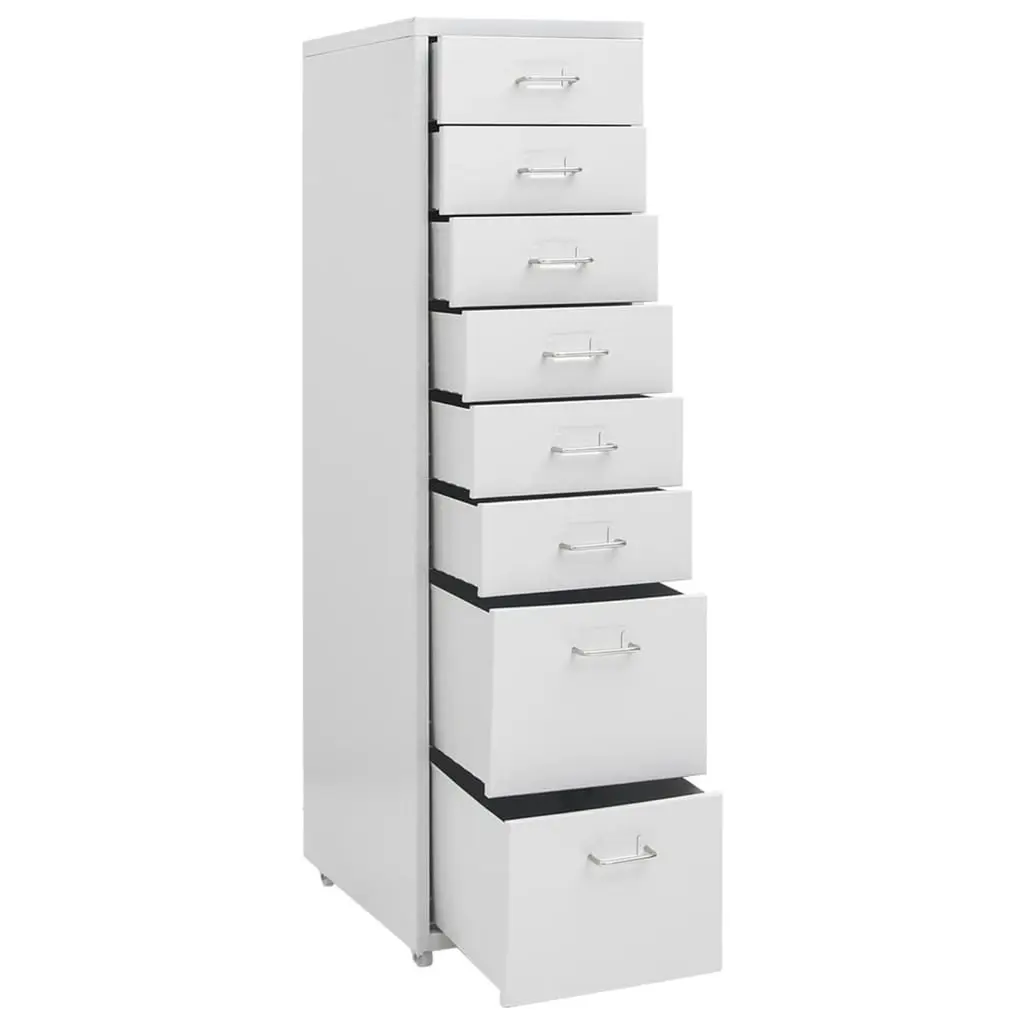 This 8-drawer mobile file cabinet mixes style and usefulness, making it great for any office. Its sleek gray finish adds a modern touch, and the eight drawers give you plenty of room to keep your important documents and supplies tidy and easily accessible. Loads of Storage: Eight drawers give you a ton of space for files and supplies. Keep your workspace tidy and easily find what you need.Easy to Roll: With four wheels, it’s simple to move around wherever you need it. Keep your important docs close at hand.Chic Design: The modern gray finish enhances any decor, making it a stylish addition to any room, whether at work or home.Solid Build: Made from quality steel, this cabinet is built to last and keeps your documents secure.Low Maintenance: The powder-coated surface is a breeze to clean. Just wipe it down with a damp cloth and keep it away from direct sunlight.